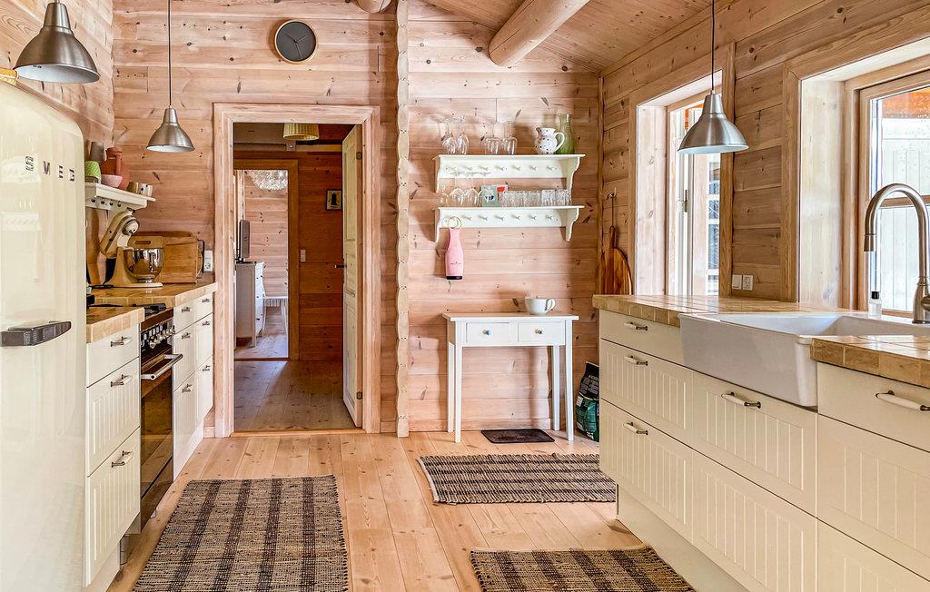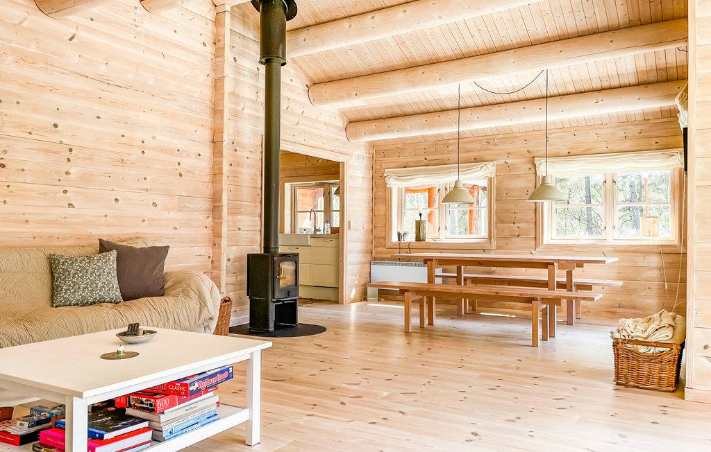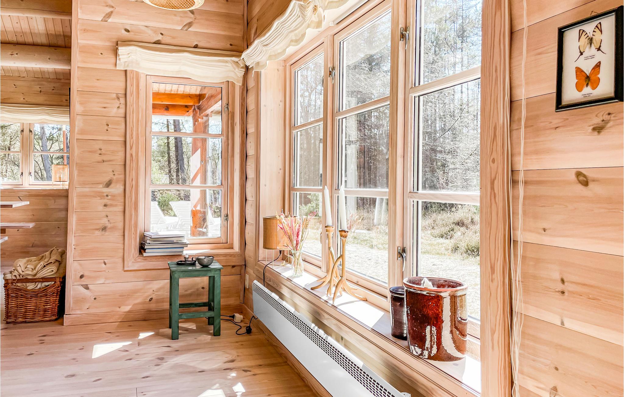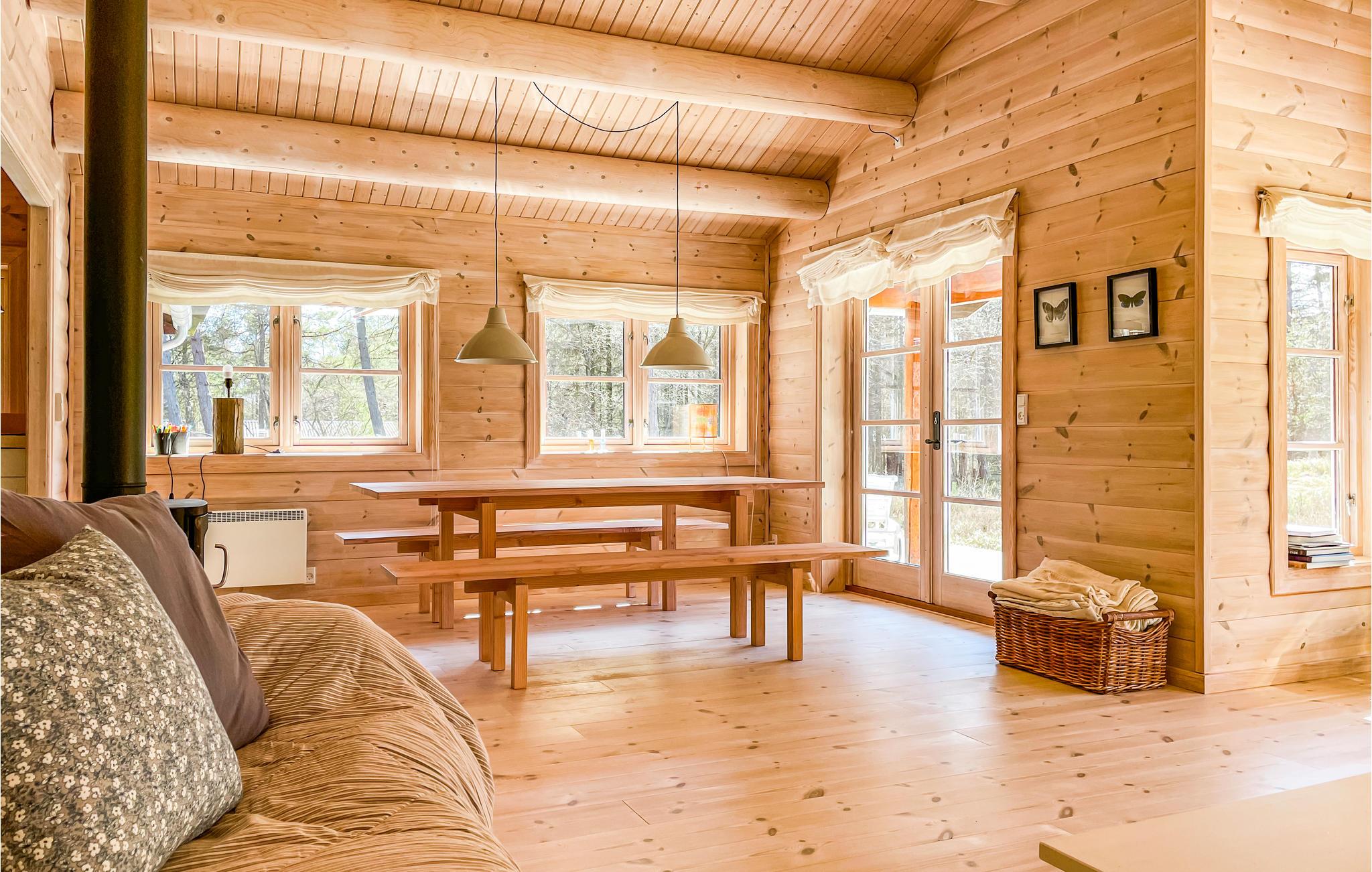 Velkommen til dette unikke sommerhus, som med sine karakteriske trægulve, vægge- og lofter skaber en udpræget feriestemning. Åbent til kip gør huset rummeligt og dejligt lys. I den hyggelige opholdsstue kan I flade ud i bløde sofaer, se film og i køligere sæsoner nyde varmen fra brændeovnen og den hyggelige atmosfære, den skaber. I det åbne, veludstyrede køkken er det en fornøjelse at tilberede dejlige feriemåltider. Der er behagelig gulvvarme på badeværelset. I finder en vaskemaskine i udhuset.