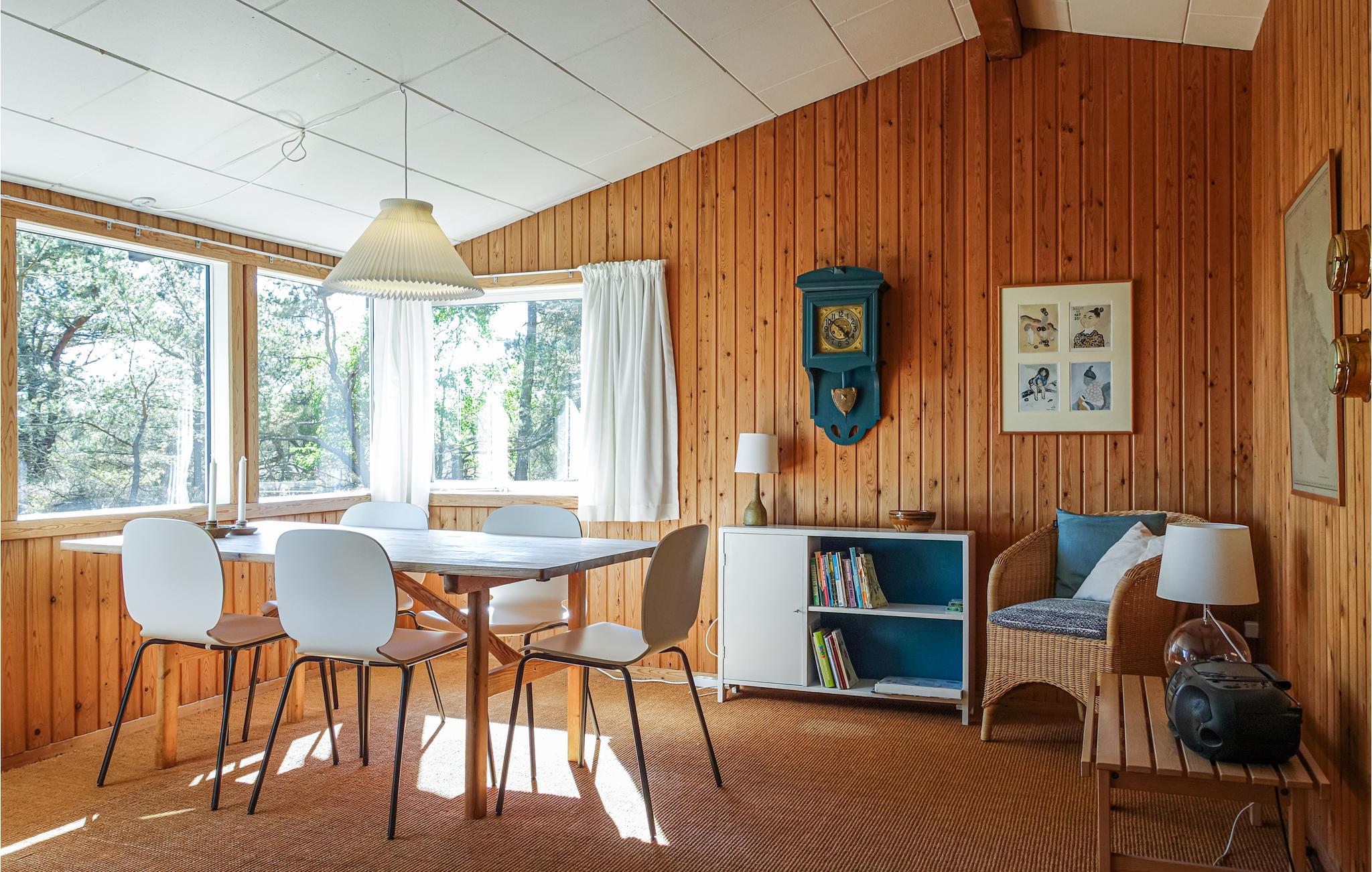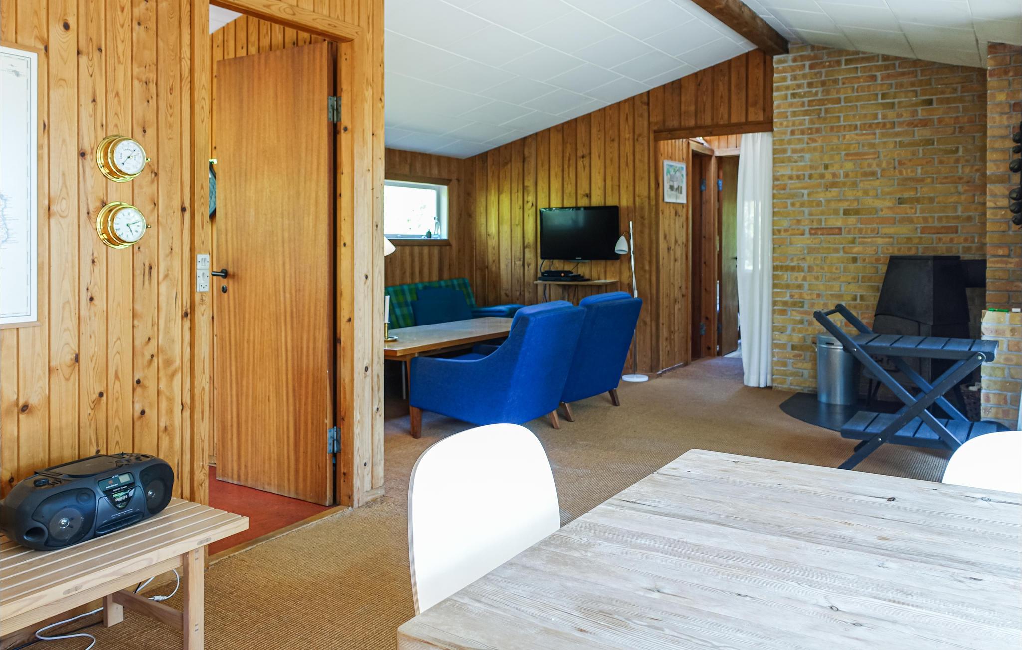Velkommen til dette hyggelige sommerhus, hvor den fantastiske strandnære beliggenhed og husets træelementer skaber en udpræget feriestemning. Hjertet i huset er den lyse opholds- og spisestue, hvor I kan sætte jer godt til rette i komfortable møbler og nyde et flot havkig gennem vinduerne. Her kan I se film, spille kort- og brætspil eller høre radio og musik. Om efteråret og vinteren kan I nyde varmen fra brændeovn og den hyggelige atmosfære, den skaber.