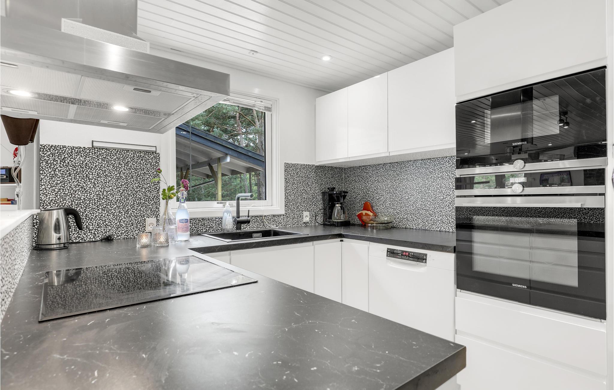Husets naturlige samlingspunkt er opholdsstuen med spiseplads, sofaarrangement, brændeovn og en veludstyret køkkenafdeling. Her kommer I til at tilbringe mange hyggelige stunder sammen. I kan se fjernsyn, høre radio eller musik, spille spil eller bare hyggesnakke. Et stort højdepunkt ved sommerhuset er den indendørs swimmingpool, hvor I kan plaske rundt i timevis. Af husets fire soveværelser er et af dem udstyret med to enkeltsenge med en længde på 180 cm. Det ene af de to badeværelser har sauna - perfekt efter en dukkert i poolen.