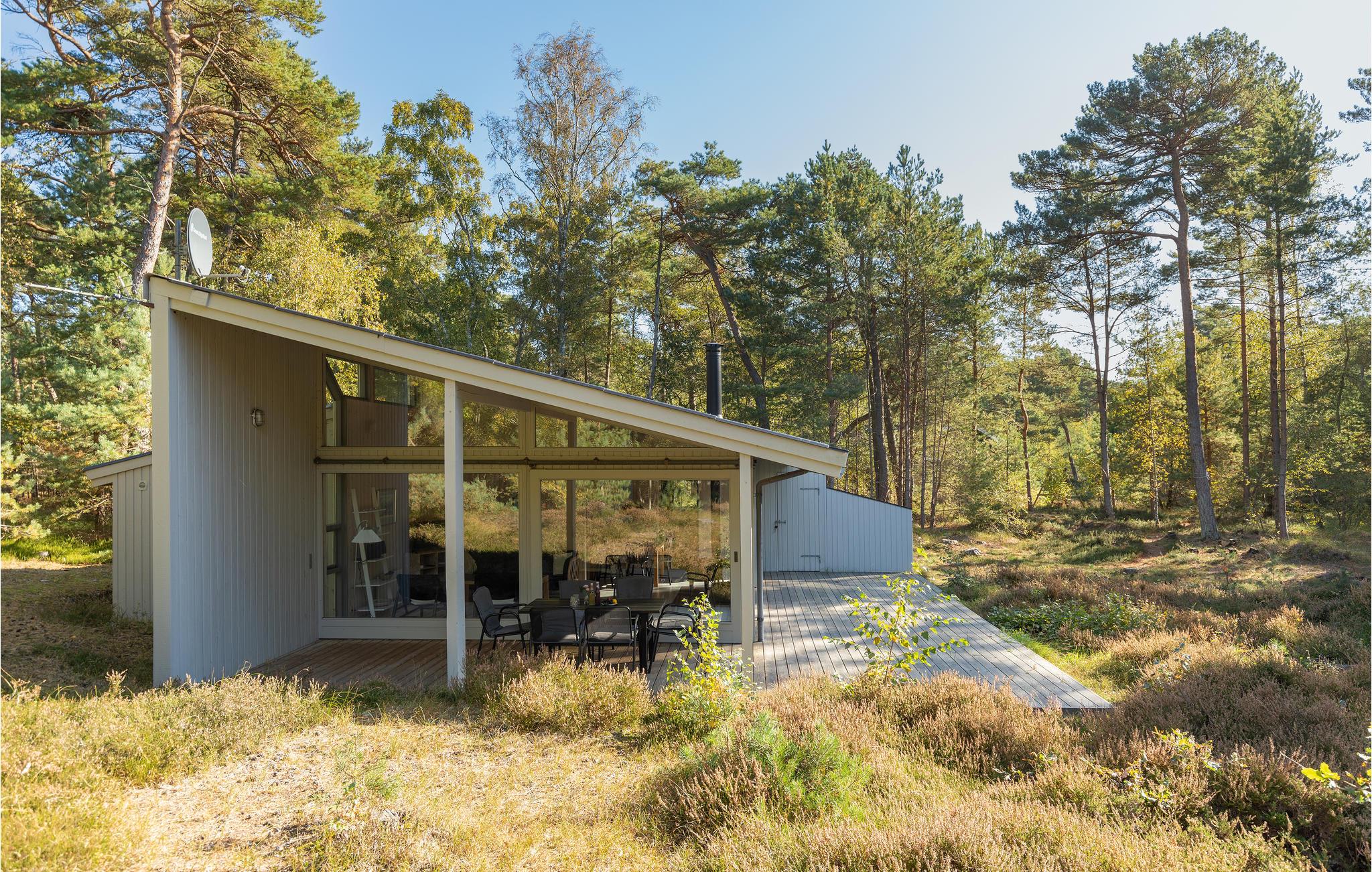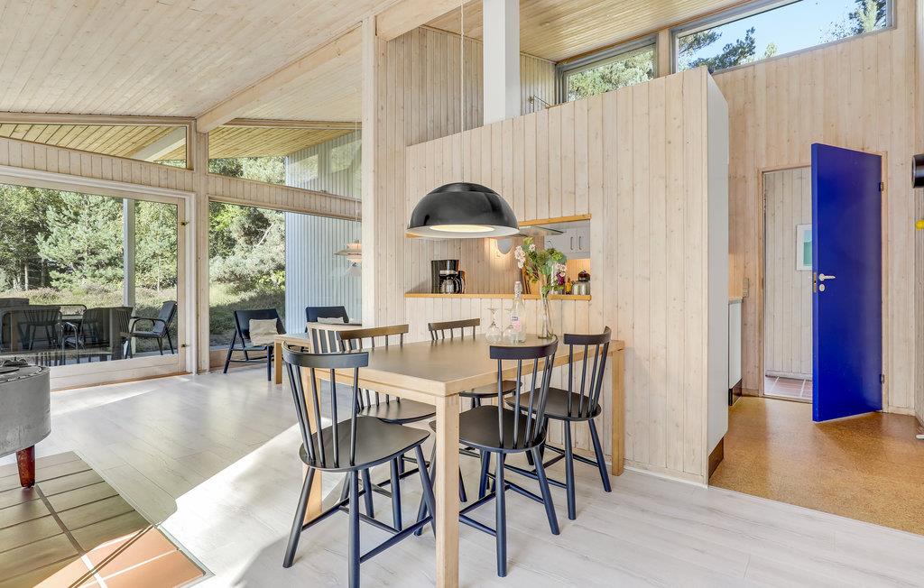 Velindrettet og arkitekttegnet træsommerhus på en skovklædt naturgrund nær en af Dueoddes dejlige og børnevenlige sandstrande.