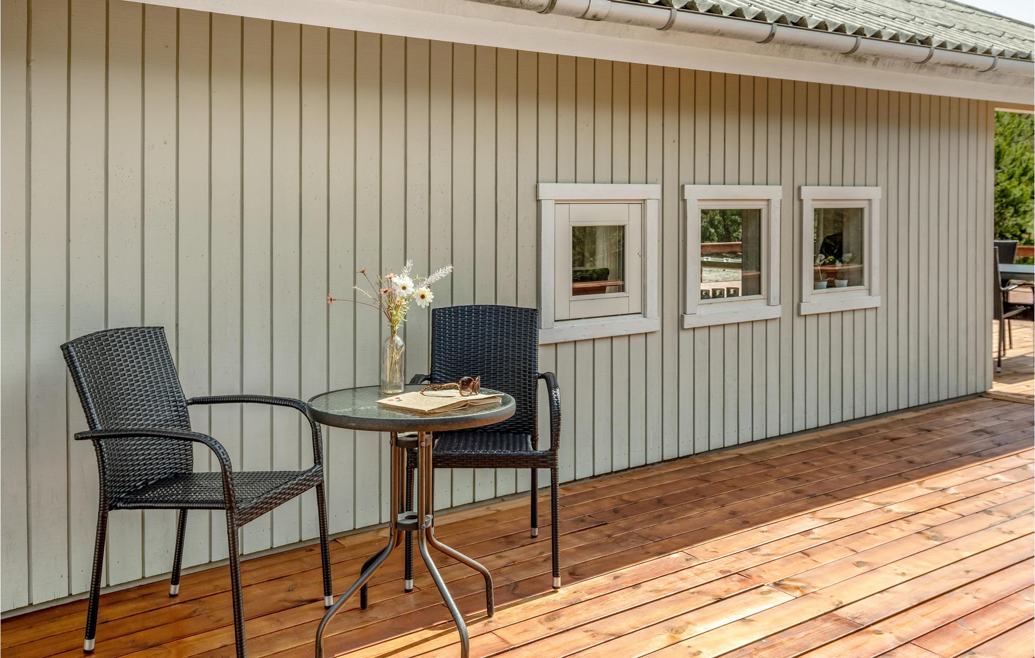 Rundt om en stor del af huset løber en delvist overdækket træterrasse med havemøbler - herunder liggestole til solbadning - og en grill, så I kan tilberede lækre feriemåltider. terrassen er det perfekte sted til ferielæsning, at spise jeres måltider eller nyde en kop kaffe eller et godt glas vin. Der er god plads til, at jeres børn kan lege på grunden omkring huset.