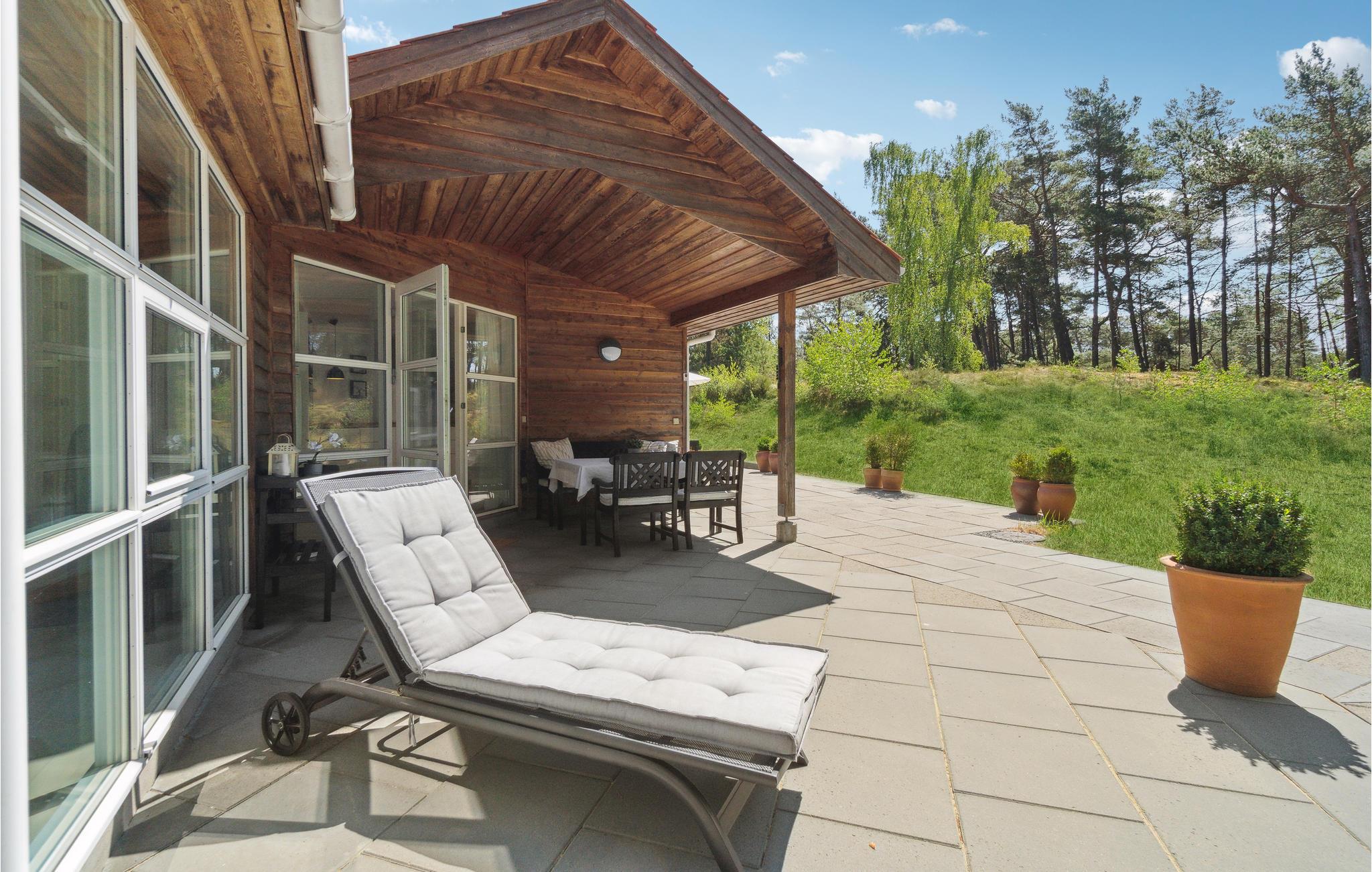 Et højdepunkt ved sommerhuset er den store, delvist overdækkede terrasse med diverse havemøbler - herunder liggestole til solbadning - og en grill til hyggelige grillaftener. Den er det perfekte sted at nyde solen og den friske luft til en kop kaffe, en kold øl eller et godt glas vin. Der er god plads til børns leg og aktivitet på grunden.