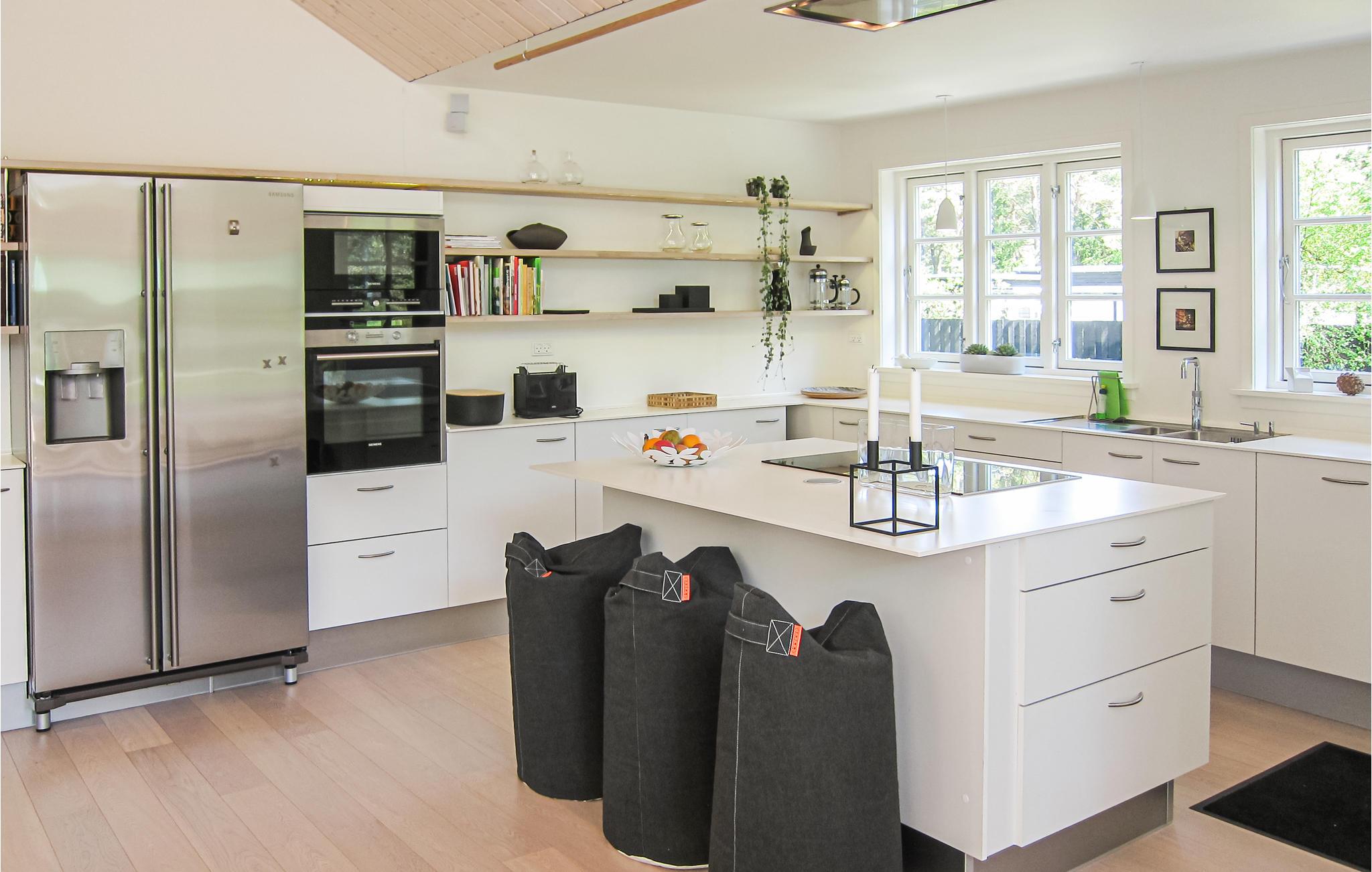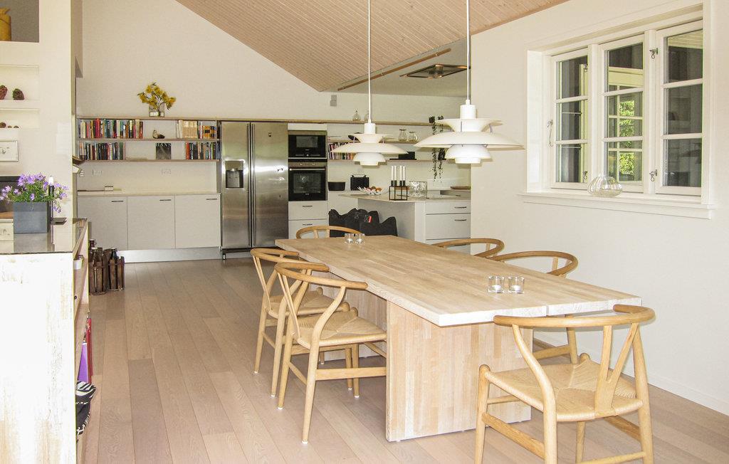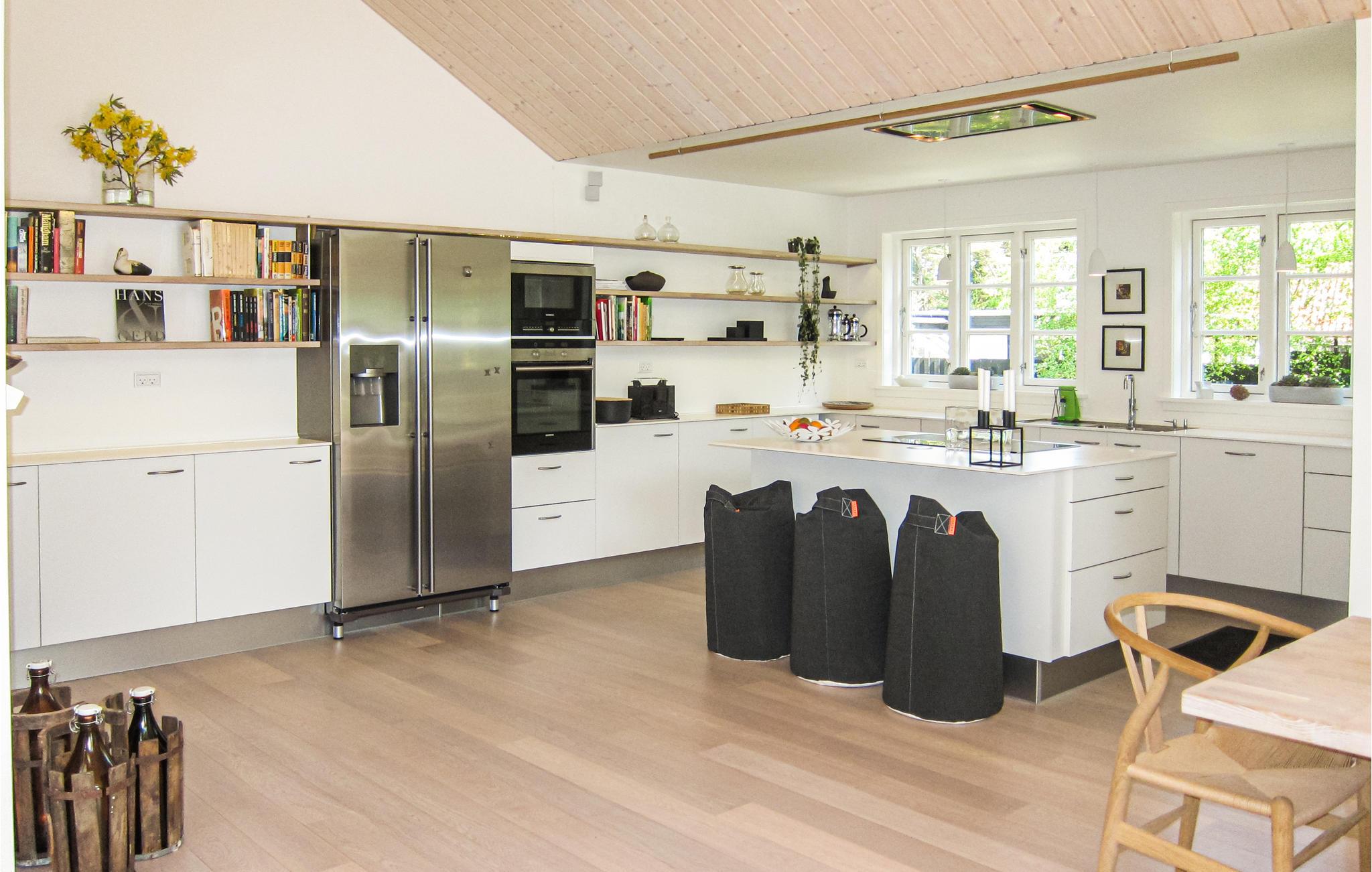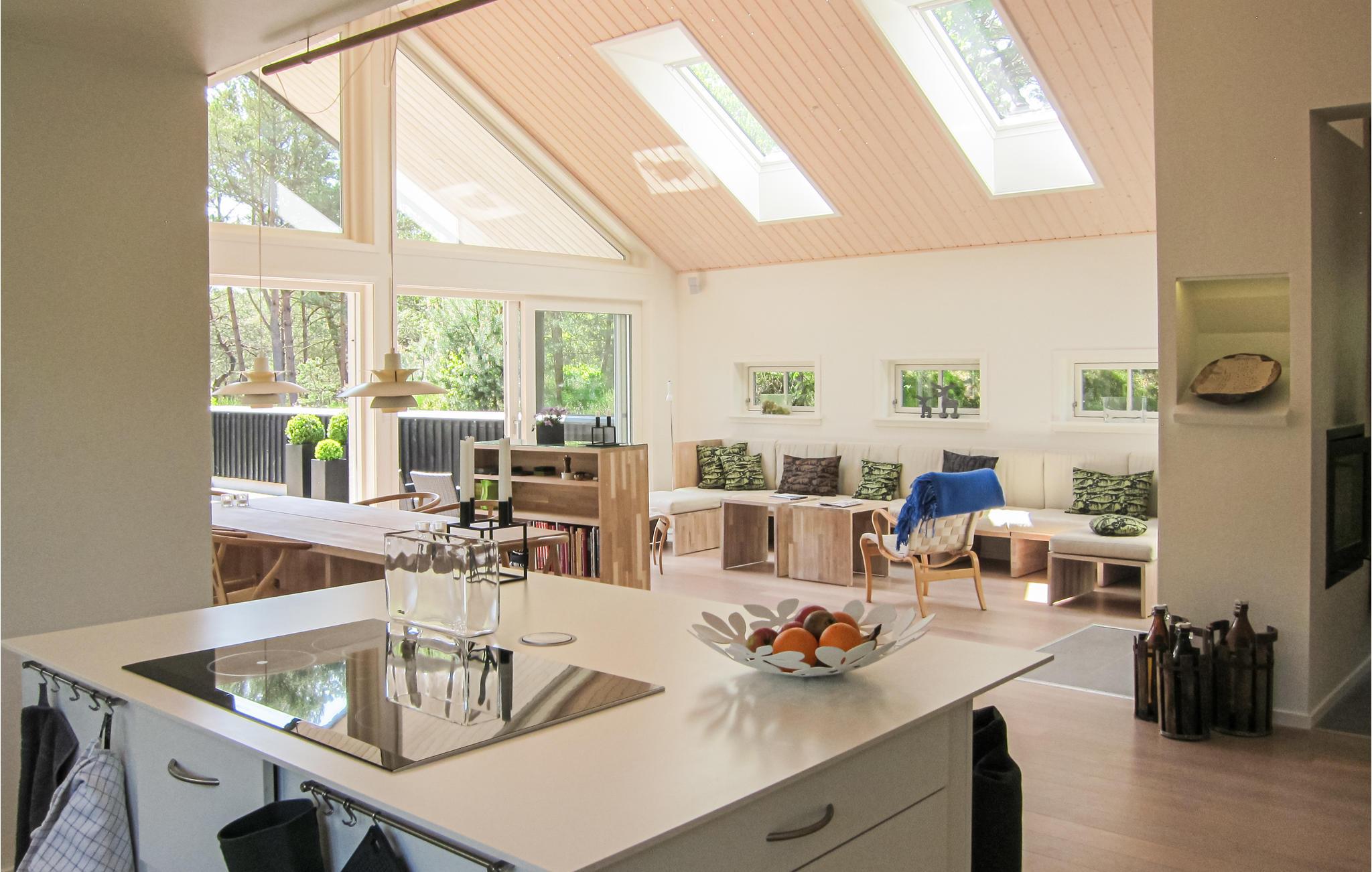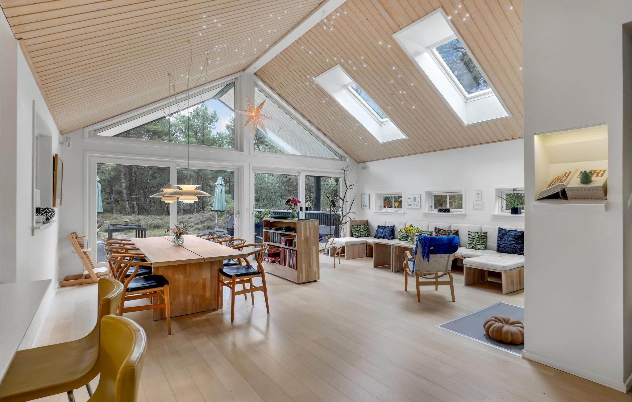 I idylliske omgivelser ved skovkanten og kun en kort gåtur fra stranden byder det lyse og indbydende hus jer velkommen. Glæd jer til hyggelige aftener i den hjemlige stue efter jeres udflugter på øen. Lad blikket glide ud gennem de store vinduer, og nyd lange, hyggelige samtaler, mens flammerne knitrer i brændeovnen.