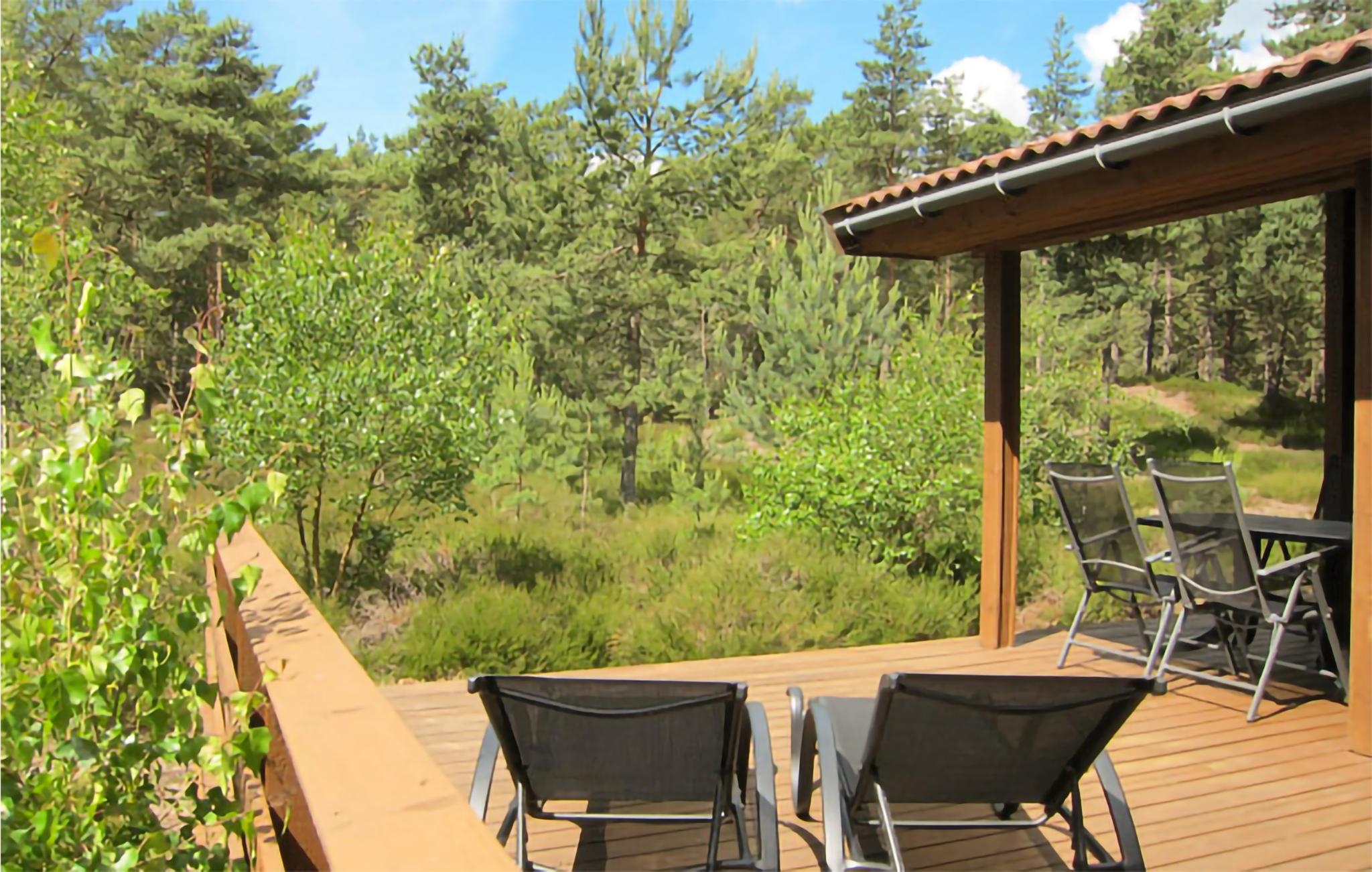 Til huset hører en dejlig, delvist overdækket træterrasse med spisepladser og liggestole I kan lægge jer godt til rette på og nyde solens stråler fra. Huset har også en mindre træterrasse med morgensol - det perfekte sted til morgenmaden og dagens første kop kaffe. Omgivelserne byder på rig mulighed for fysisk udfoldelse og dejlige gåture.