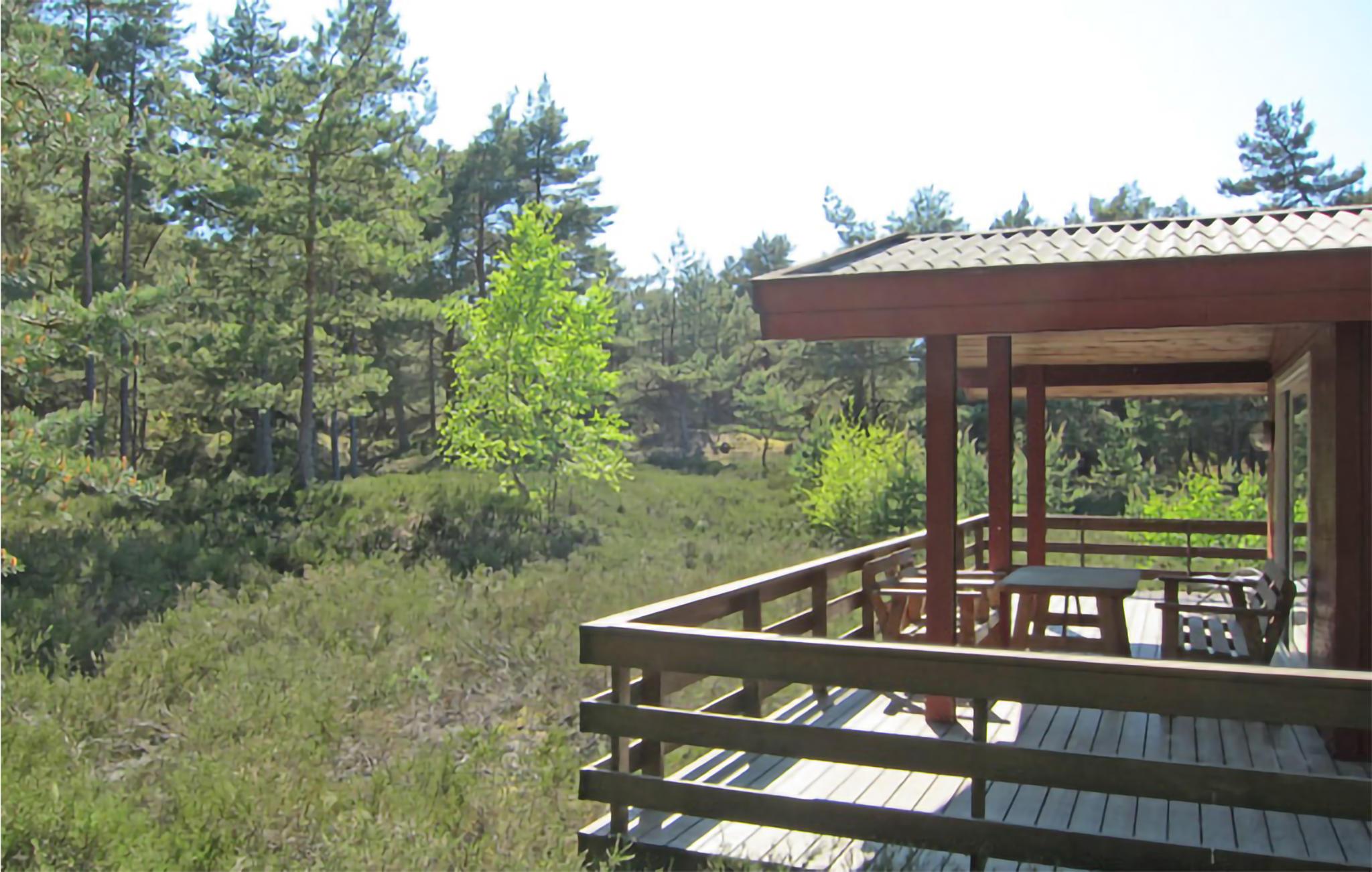 Dejligt træsommerhus med en rolig beliggenhed på en flot, kuperet og skovklædt naturgrund. Huset ligger direkte ved et fredet område med klitter og nær Dueoddes skønne sandstrand.