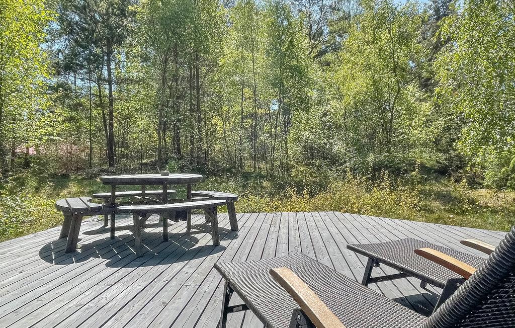Til huset hører en stor, solrig og delvist overdækket træterrasse med havemøbler - bl.a. liggestole til solbadning - og en grill, så I kan tilberede lækre grillretter. Her kommer I til at spise mange af jeres feriemåltider og sidde/ligge timevis i solen. Der er en carport til jeres bil.