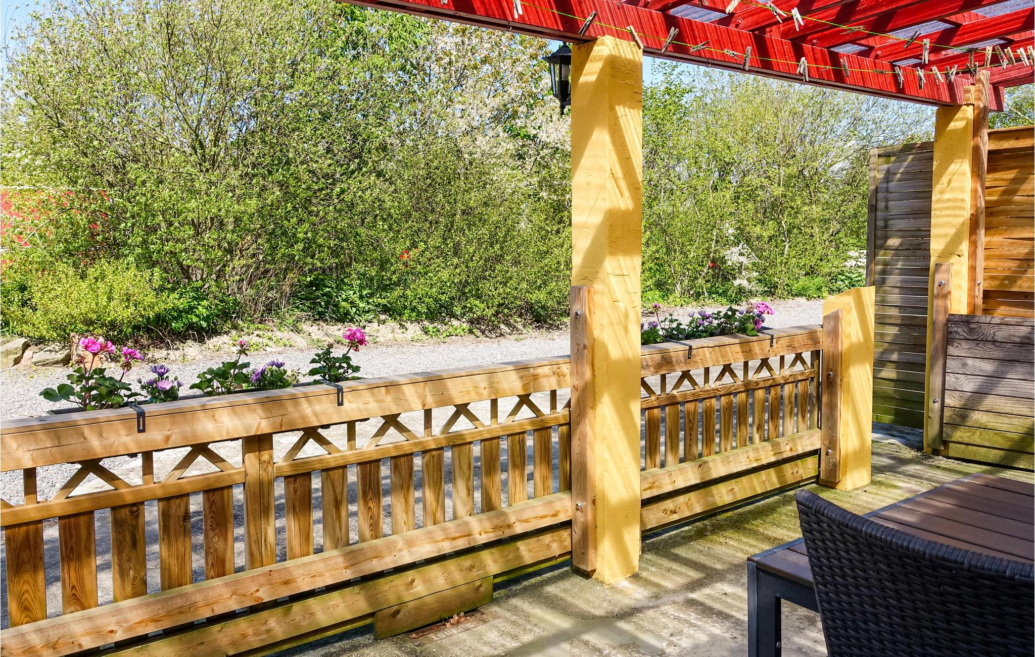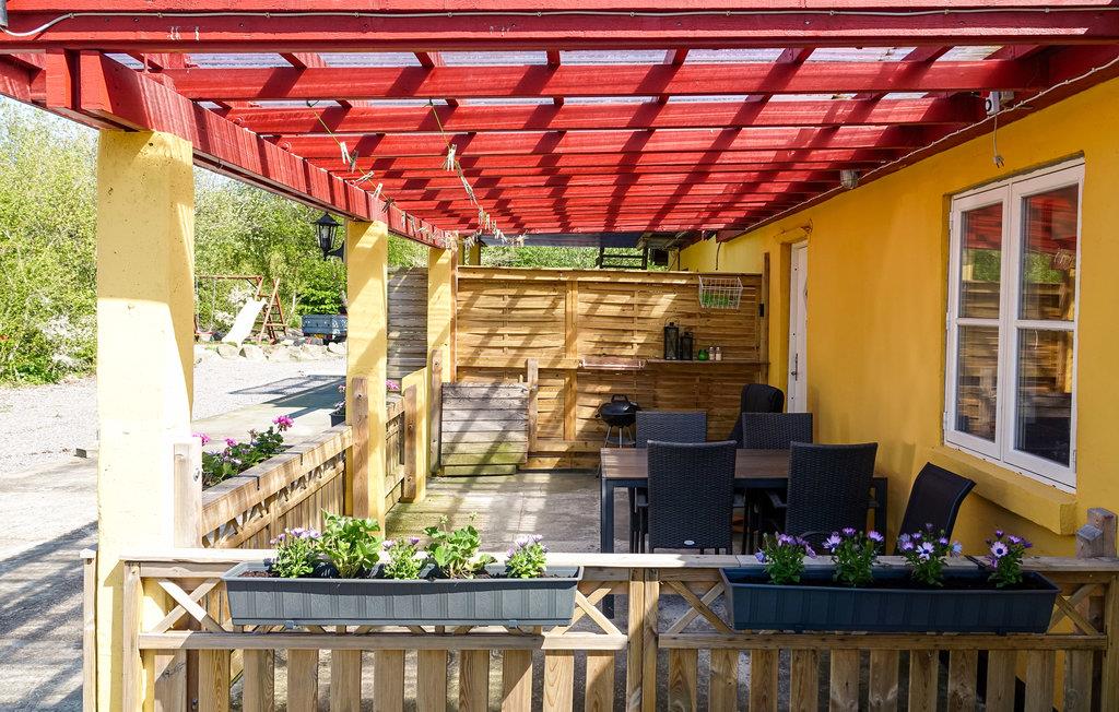 I har en dejlig, overdækket træterrasse med havemøbler til rådighed, hvor I kan sidde og spise, læse en god bog eller nyde en kop kaffe eller et glas vin. Terrassen er også udstyret med en grill, så I kan tilberede lækre feriemåltider.