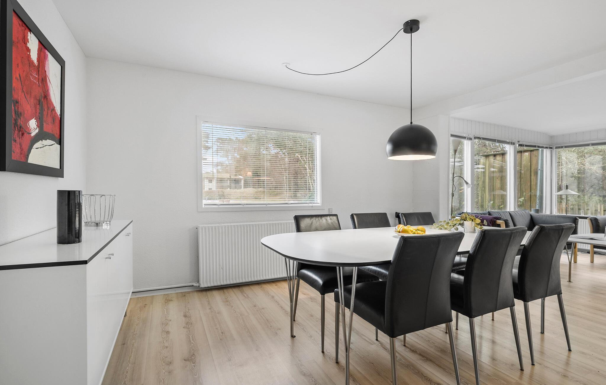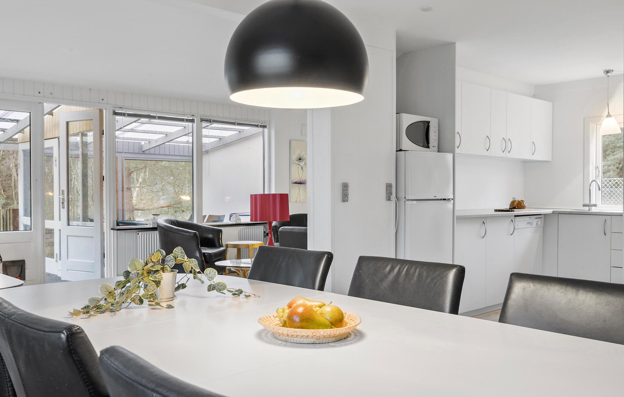 Velkommen til det lyse og åbne opholdsområde i jeres familievenlige feriehus. Tilbered lækre retter sammen i det veludstyrede køkken, og nyd dem ved det store spisebord. Efter en aktiv dag ved kysten kan I slappe af i den hyggelige sofagruppe, hvad enten det er til en spilleaften eller en god film.