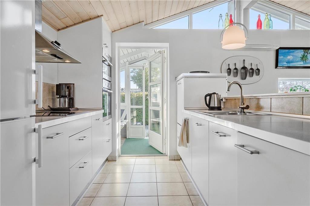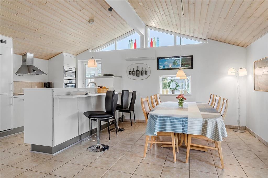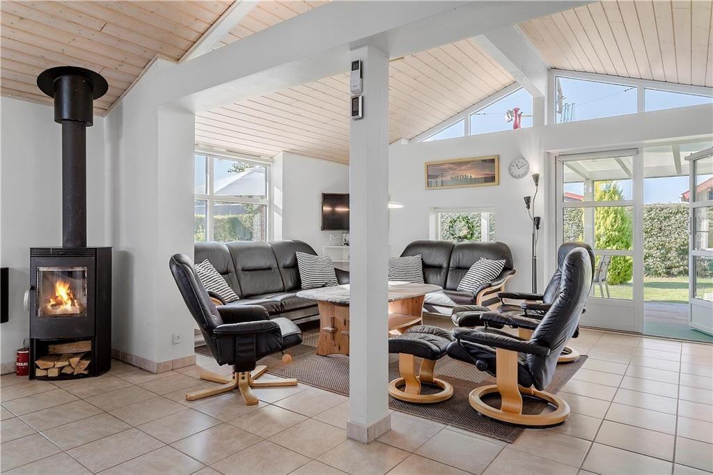 Veludstyret køkken i åben forbindelse med spiseafdelingen. Den hyggelige stue er udstyret med nye møbler og fladskærm. Hyg dig med gode venner og familie i spisekrogen, eller slap af i lænestolene med en god bog, mens ilden knitrer i brændeovnen.