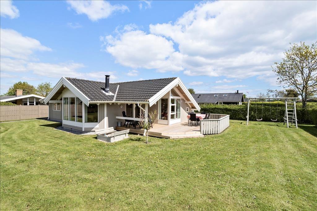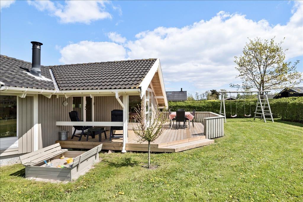 Sommerhuset har både en åben og en overdækket terrasse, så du altid kan finde den perfekte plads til at nyde dagen. Den solrige terrasse er ideel til morgenkaffe og grillmiddage under åben himmel, mens den overdækkede del giver læ og skygge, når solen står højt. Haven er familievenlig og giver god plads til leg og afslapning, så børnene kan more sig, mens de voksne finder ro i grønne omgivelser. Efter en dukkert ved stranden er det oplagt at nyde en stille stund på terrassen eller skylle saltvandet af under den udendørs bruser. Terrasserne og haven bliver hurtigt ferieoaser, hvor I kan samle jer til måltider, lege og hyggelige aftener.