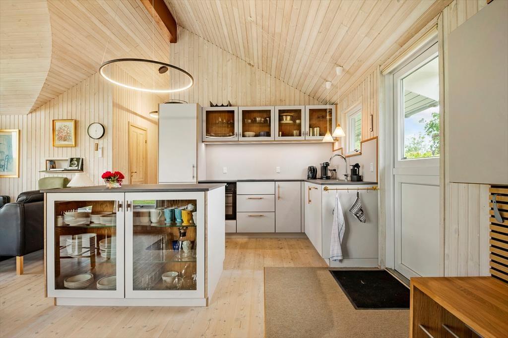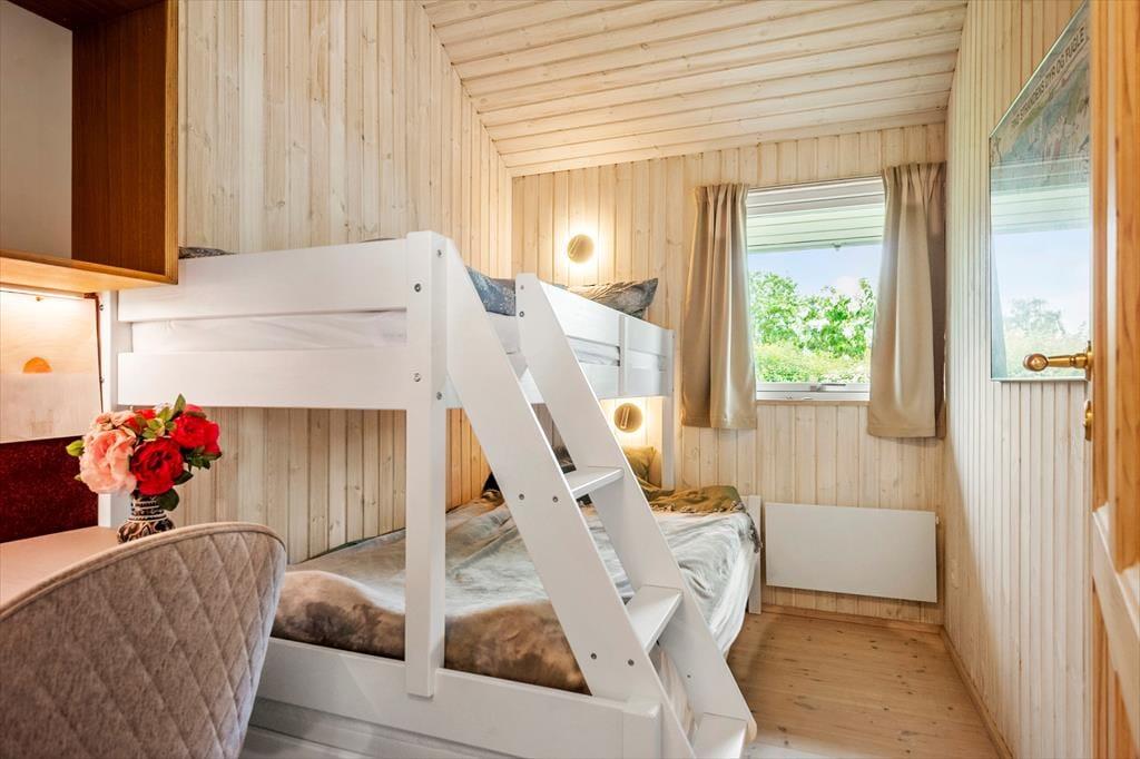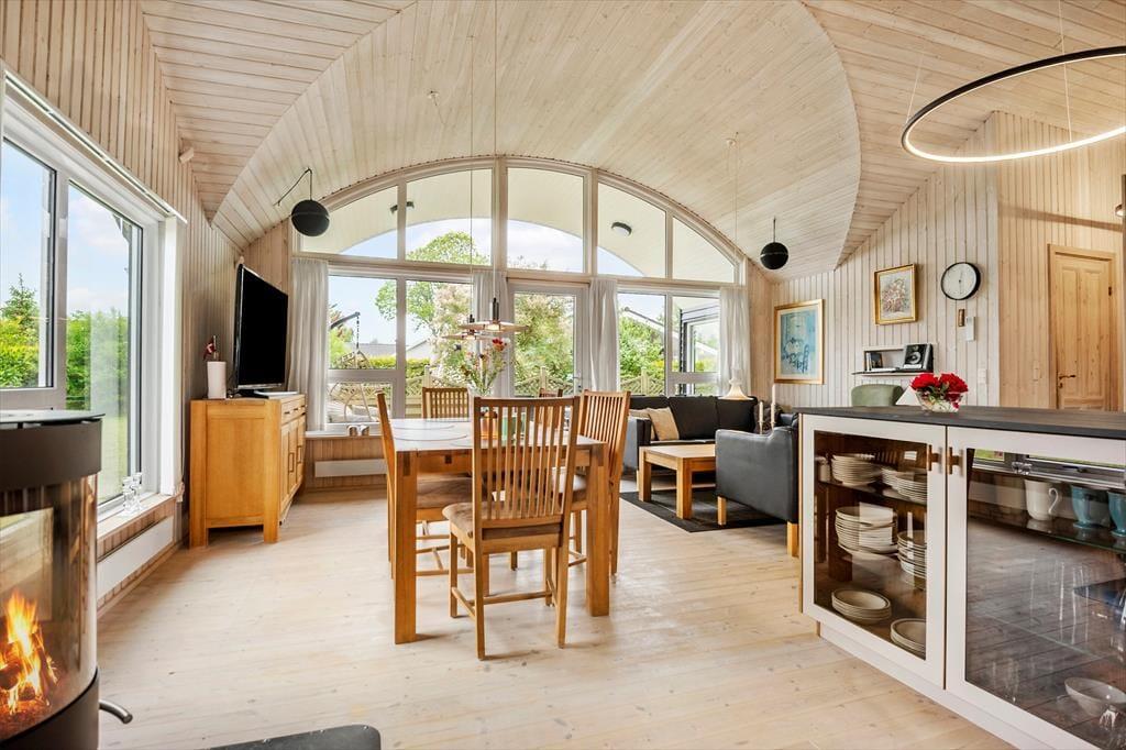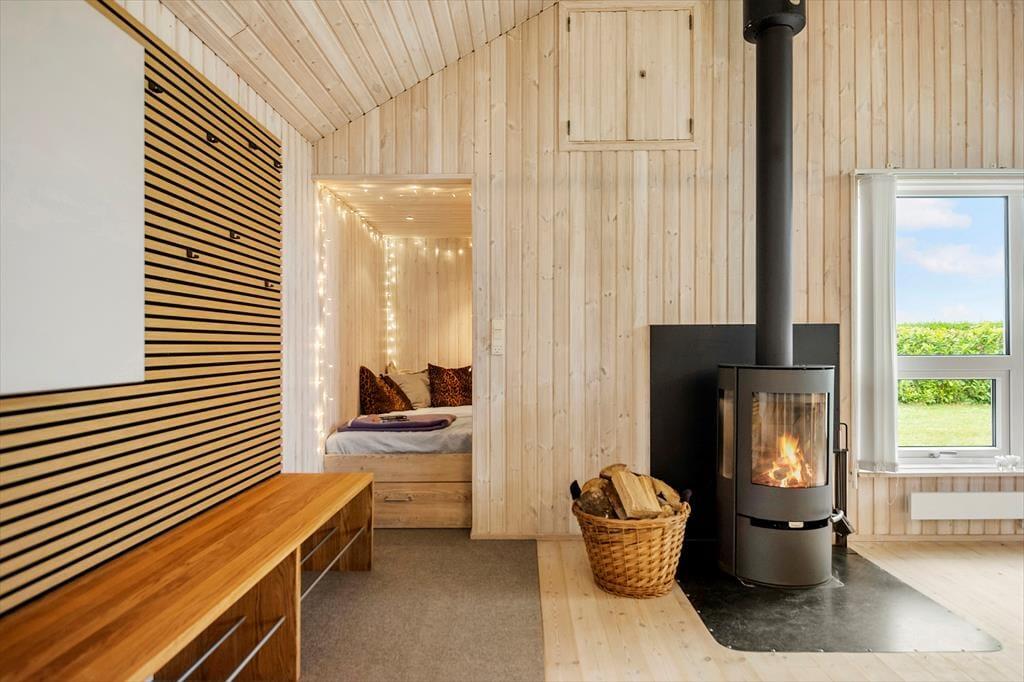 Indenfor bliver du mødt af lyse, venlige rum med loft til kip og en dejlig fornemmelse af luft og lethed. Stuen er husets hjerte – her kan du samle familien om brændeovnens knitren på kølige aftener, mens sollyset strømmer ind ad vinduerne om dagen. Køkkenet ligger i åben forbindelse med stuen og er veludstyret, så du nemt kan tilberede alt fra morgenmad til fælles middage, der nydes omkring det store spisebord.