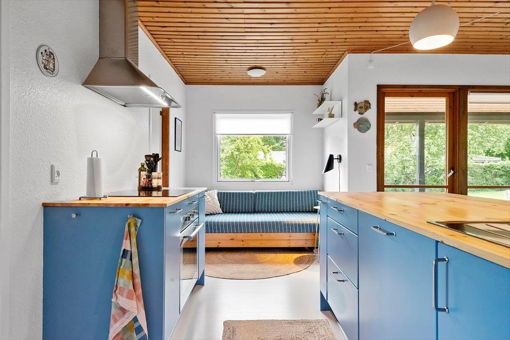 Indretningen er enkel og behagelig, med et afslappet udtryk og bløde farver, der får dig til at føle dig hjemme med det samme. Når dagen lakker mod enden, er der altid et dejligt sted at trække sig tilbage og sove længe – for her er ingen vækkeure, kun lyset, der langsomt vender tilbage næste morgen. Det åbne køkken og spiseområdet danner rammen om de fælles måltider og hyggelige stunder – og måske endda nye livretter, du først får tid til at opdage i ferien.