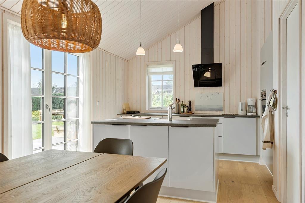 Træd ind i en verden af ny nordisk elegance, hvor hvert rum emmer af hygge og varm atmosfære. De store terrassedøre fra køkken, alrum og stue åbner op for en harmonisk forbindelse mellem indendørs og udendørs ferieliv. Huset byder på tre soveværelser med dobbeltsenge og en hems, hvilket sikrer komfortabel plads til alle. Det lyse og lækkert indrettede badeværelse samt et ekstra toilet fuldender feriekomforten.