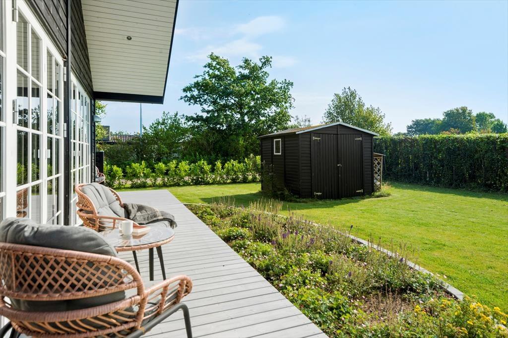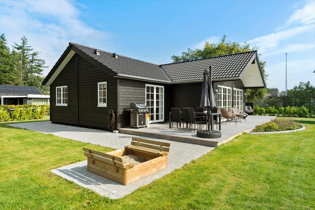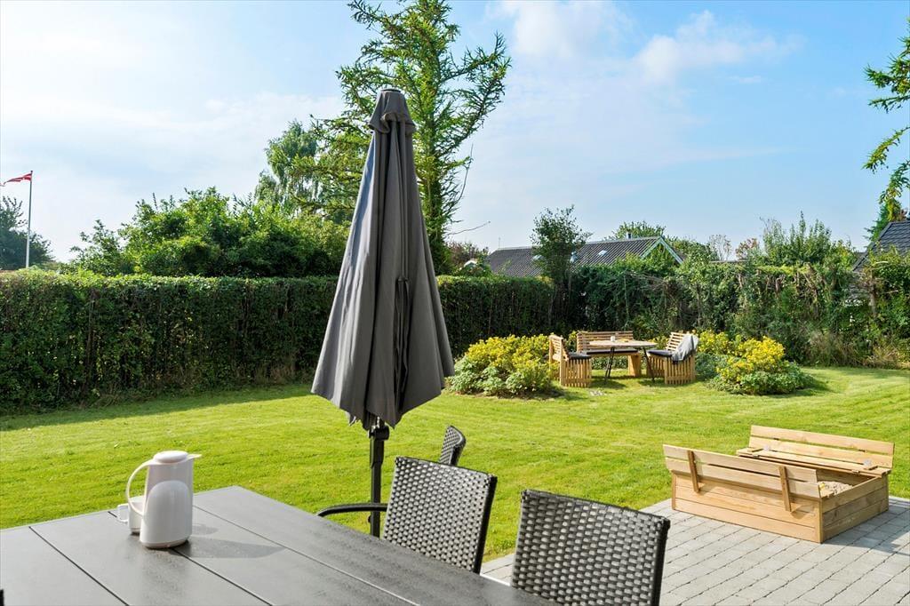 Den store græsplæne indbyder til leg og boldspil, mens de små kan udforske sandkassen. Madlavning bliver en fornøjelse på gasgrillen, og måltiderne kan nydes på den lækre træterrasse. Slå parasollen op og nyd skyggen på de varmeste dage, mens i fornemmer havluften fra havet som blot er 300 meter væk.