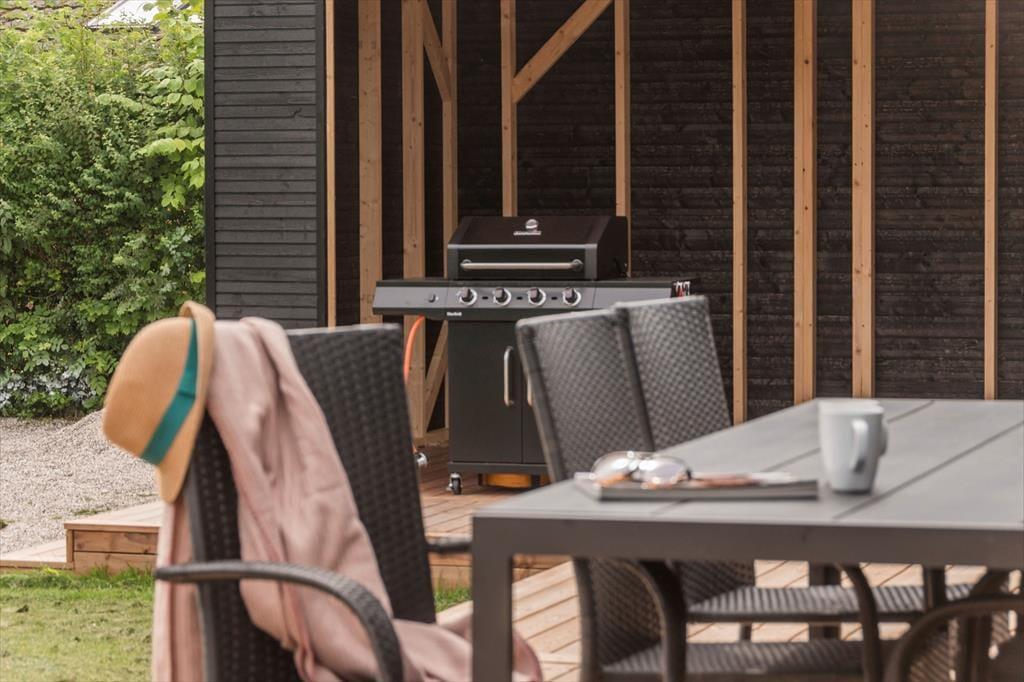 Det er udenfor, sommerhuset for alvor folder sig ud og inviterer dig til at lade ferielivet tage over. Den store, åbne terrasse er et kapitel for sig – et sted hvor morgenkaffen smager ekstra godt, og hvor du kan følge solens gang over himlen, mens dagen langsomt udfolder sig i et tempo, der er helt dit eget. Her kan du nyde lange frokoster, mærke græsset under fødderne eller lade dig henføre af aftener med god mad, snak og stille øjeblikke under åben himmel. Og når lysten til vandet kalder, er det kun en kort gåtur til den smukke Dyngby Strand, hvor sandet er blødt, og vandet indbyder til leg, badning og fordybelse. Strandens naturlige omgivelser skaber ro, og du kan bruge timevis på at gå ture langs vandkanten, samle skaller eller bare sidde stille og lade tankerne flyve frit, mens du nyder duften af salt og havbris.