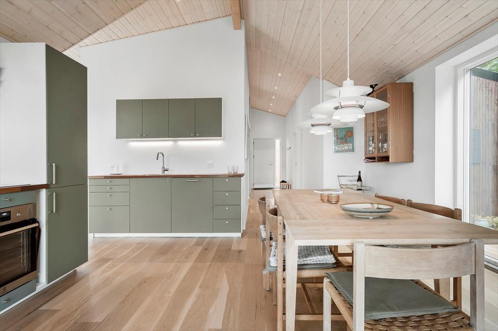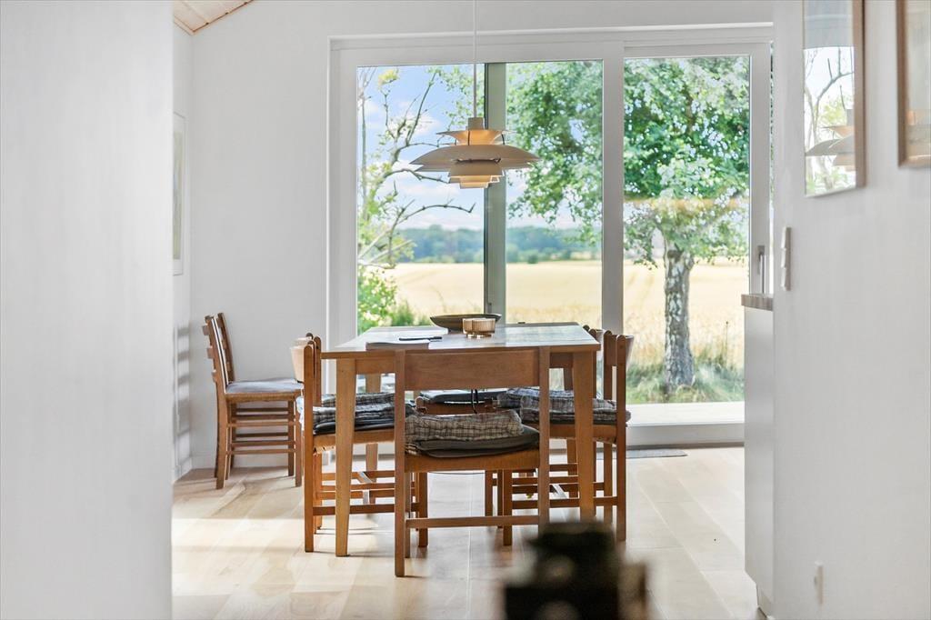 Central placeret i huset er det store køkken/alrum, hvor køkkenet indeholder alt, hvad I har brug for under jeres ophold af moderne faciliteter til lækker madlavning. Her kan I nyde lysindfaldet og den fine udsigt ud over markerne.