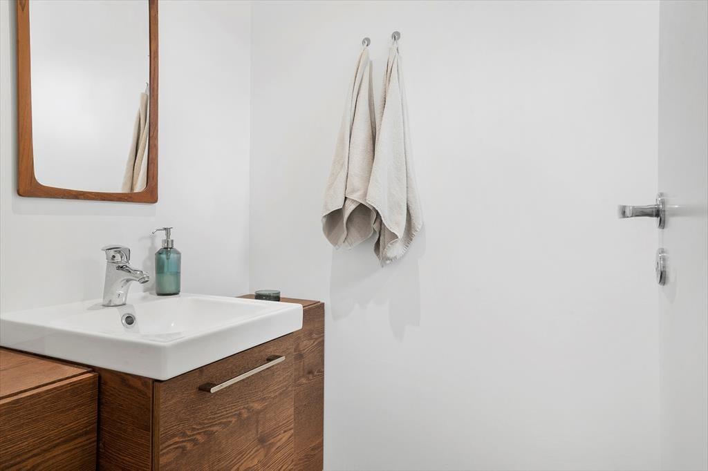 Der er flot badeværelse i huset med toilet, bruser og et dejligt badekar. Her er desuden gæstetoilet og både vaskemaskine og tørretumbler i huset, så I kan få vasket badehåndklæderne efter en lang dag på stranden.