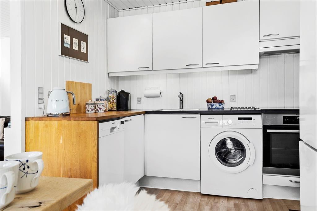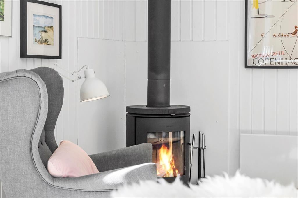 Nyd roen i lænestolen ved brændeovnen. Brændeovnen der giver hygge og varme i de kolde måneder. Det gode køkken/alrum giver mulighed for leg på gulvet, spil ved bordet og en god film i fjernsynet. Indbegrebet af god dansk sommerhushygge.