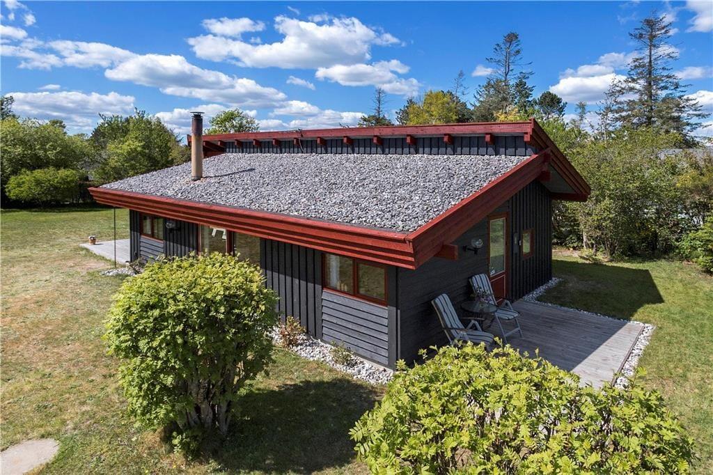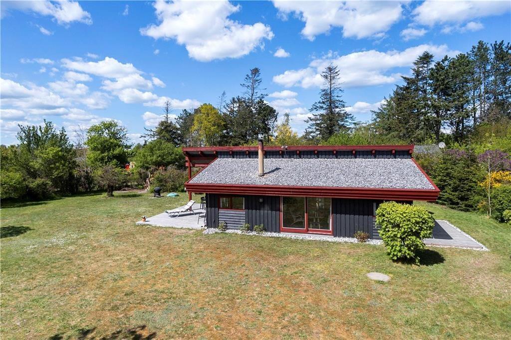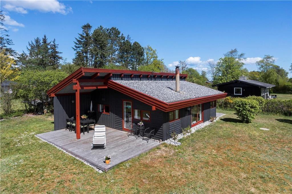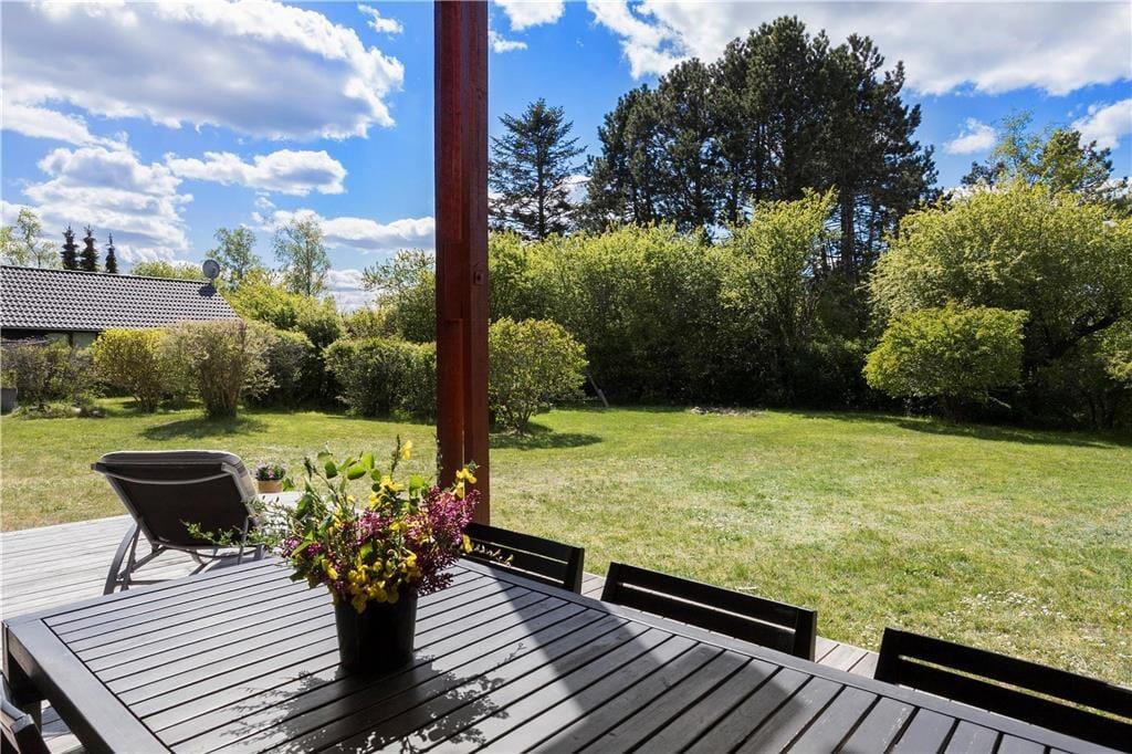 Sommerhuset ligger tilbagetrukket, så her er virkelig roligt og stille. Terrassen er overdækket med skygge og læ. Til sommerhuset hører en stor grund, hvor der er mange hyggelige kroge, man kan sætte sig og nyde den danske sommer. I haven er der havemøbler og liggestole samt parasol.