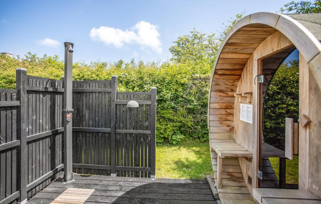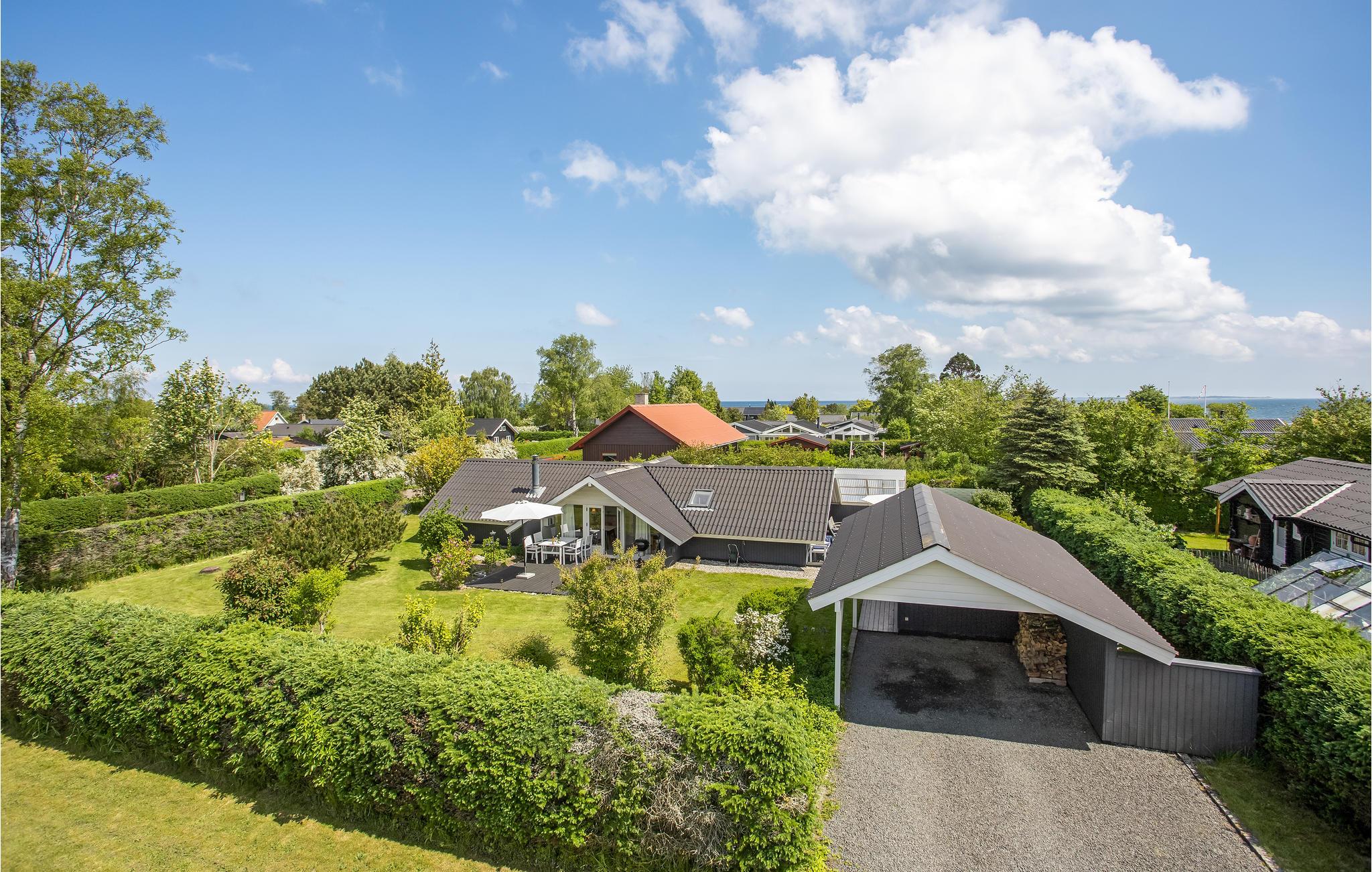 Kun 250 m fra en fredelig sandstrand ligger dette velholdte, rummelige og hyggelige feriehus. Huset er indrettet med en dejlig stue, der har et stort vinduesparti mod haven og terrassen, som giver et flot lys i stuen. I forbindelse med stuen ligger det veludstyrede, og for et feriehus, store køkken. Der er tre gode soveværelser, alle med dobbeltsenge. Haven er hyggelig med træer og buske, der er flere fine terrasser, heraf en del overdækkede, som helt sikkert vil blive et yndet tilholdssted under ferien. I forbindelse med terrassen er der en udendørs sauna, hvor I kan nyde varmen, måske efter en vinterdukkert i havet.