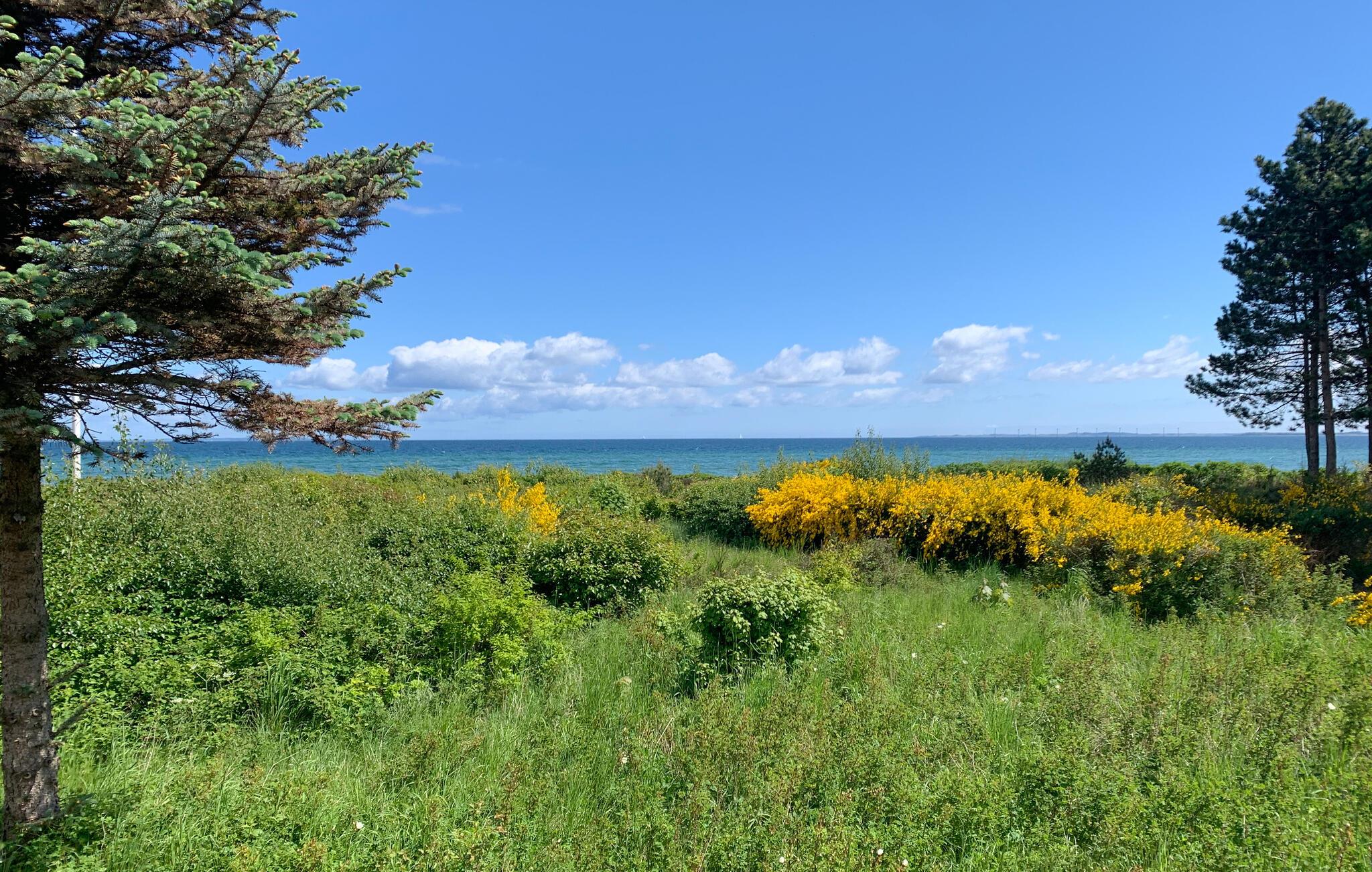 Charmerende feriehus ved Dyngby Strand med panoramaudsigt, spabad og kort afstand til Aarhus.