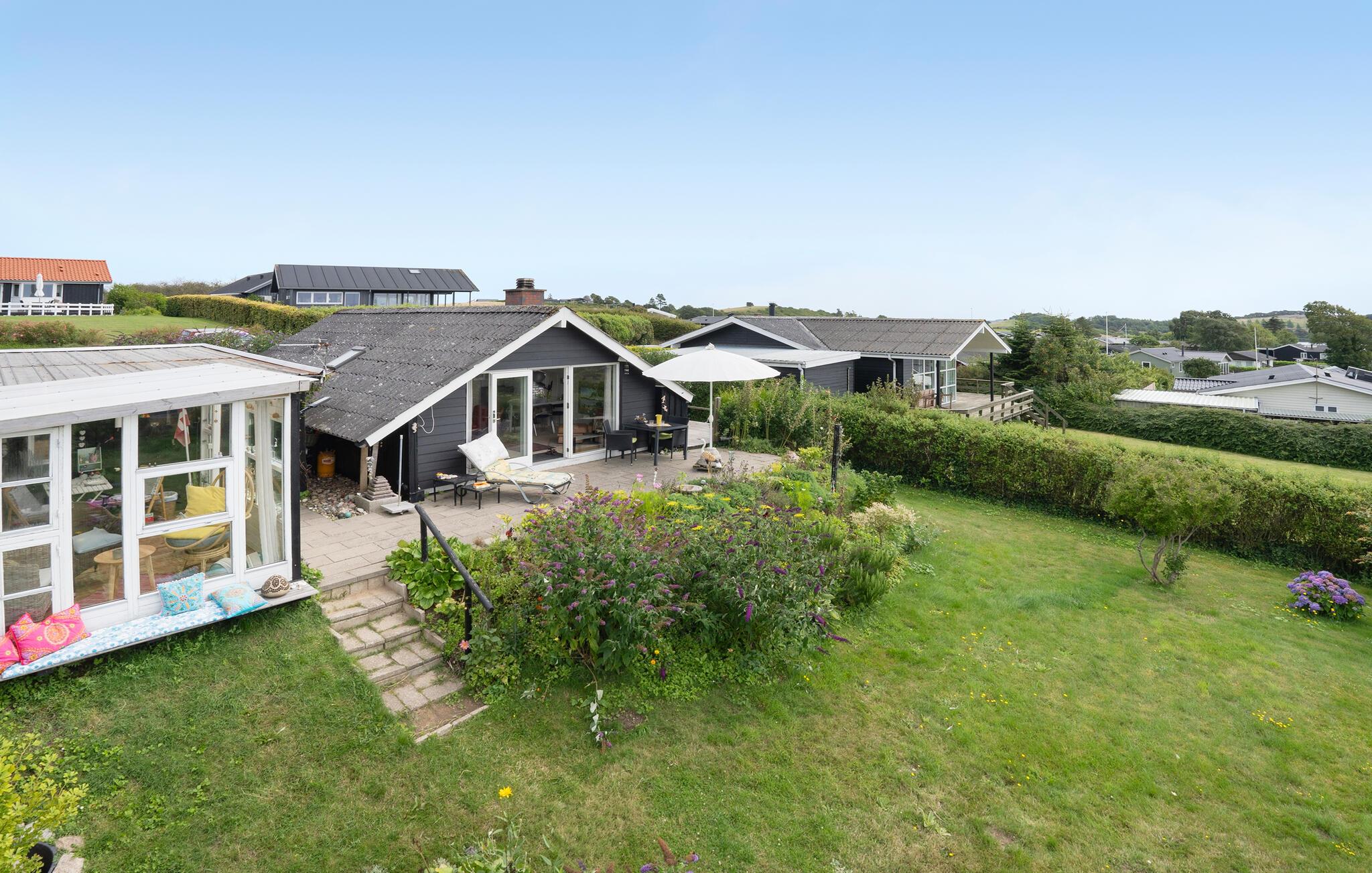 Huset har flere terrasser, så I har sol hele dagen. I løbet af foråret og efteråret kan I sidde lunt og godt i udestuen og kigge på vandet. Børnene kan bygge tårne i sandkassen og lege på græsplænen.