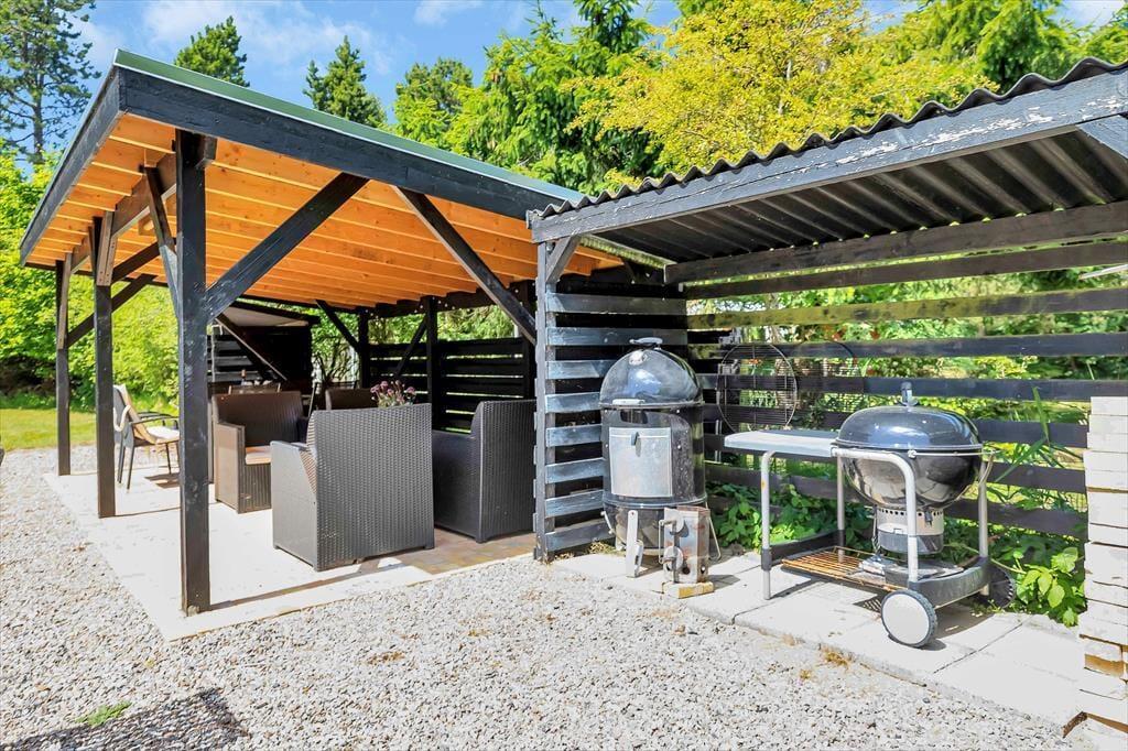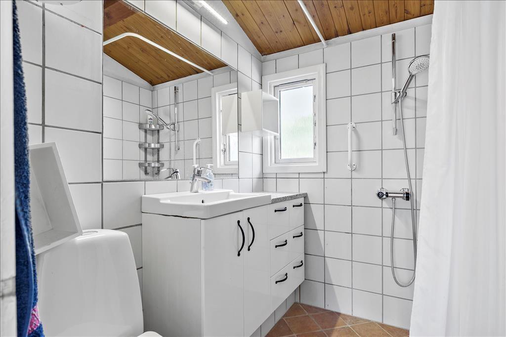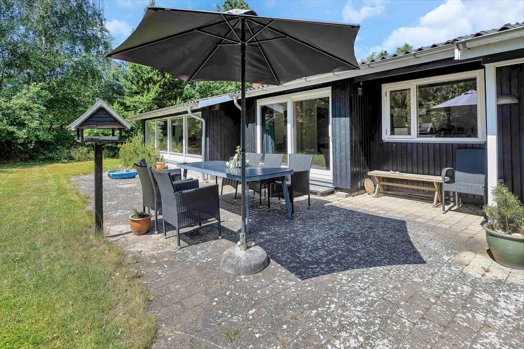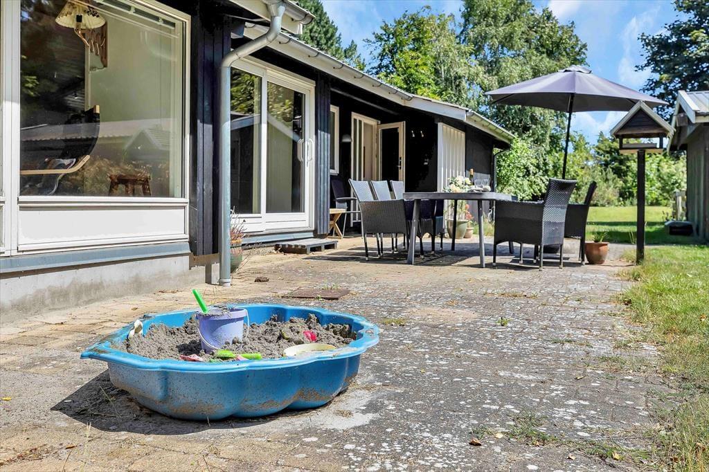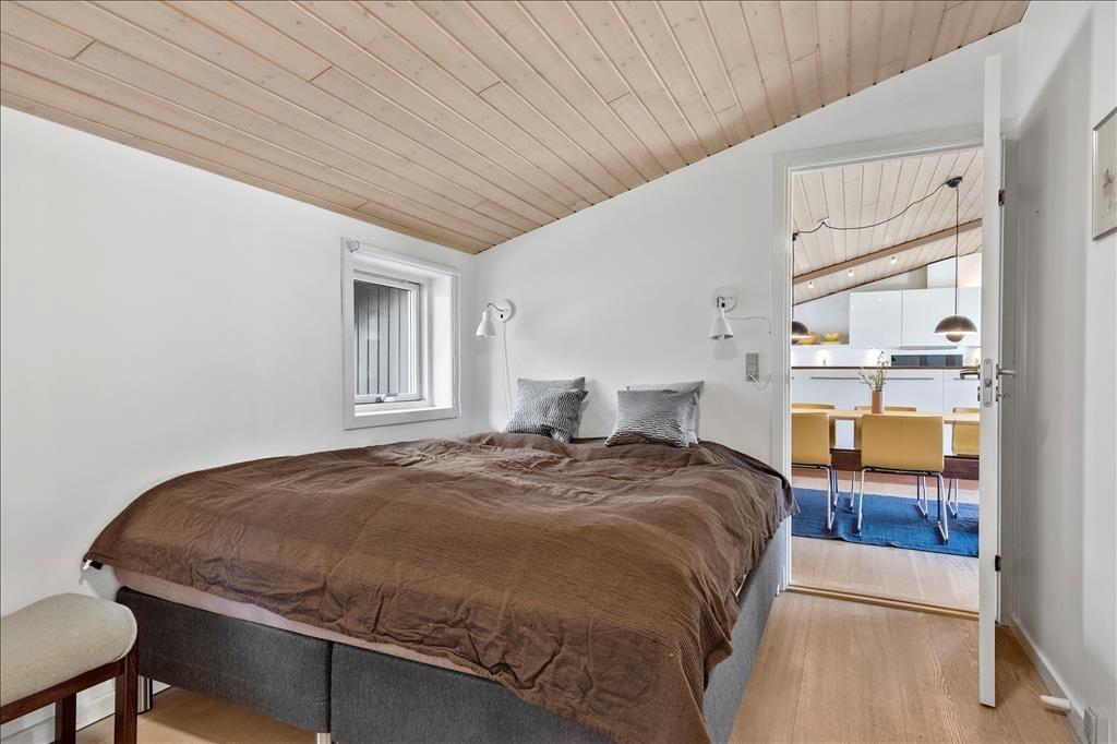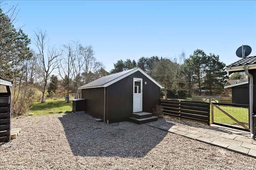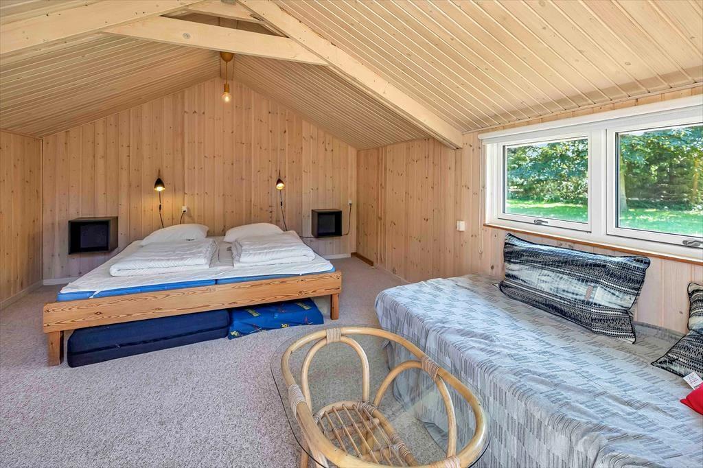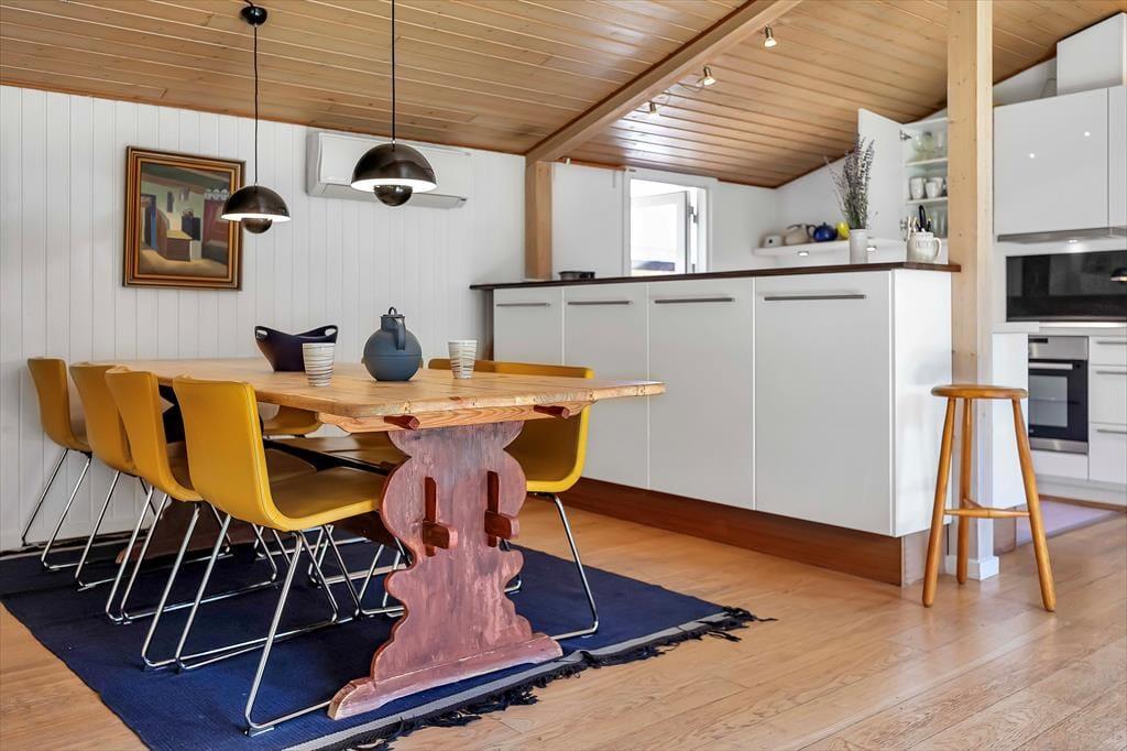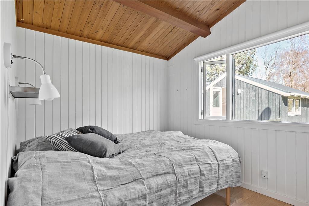 Huset indeholder stue og køkken i ét med loft til kip. I køkkenet er der opvaskemaskine og mikroovn og stuen indeholder TV, brændeovn og varmepumpe, hvilket gør huset egnet til ferie året rundt. Fra de fantastiske panoramavinduer, har du kig til den hyggelige og ugenerte have, hvor rådyrene krydser jævnligt. I huset er der desuden 3 gode værelser med dobbeltsenge og ligeledes et anneks med dobbeltseng. Badeværelset er med brus. På den sydvendte flise terrasse er der optimale solforhold og i indkørslen er der arrangeret et godt udekøkken og tæt på huset, er der slæbested til båd.