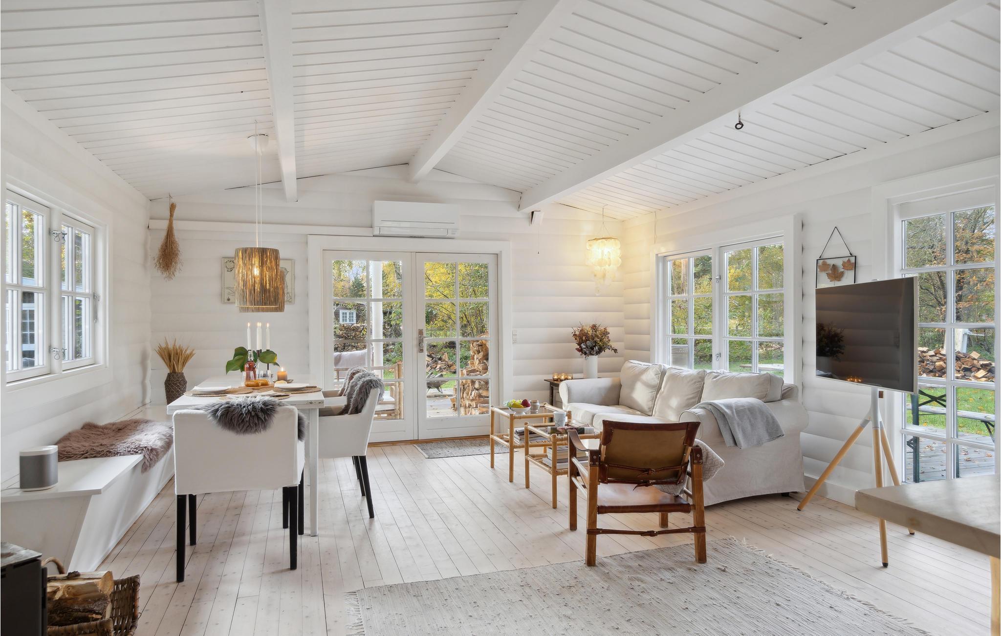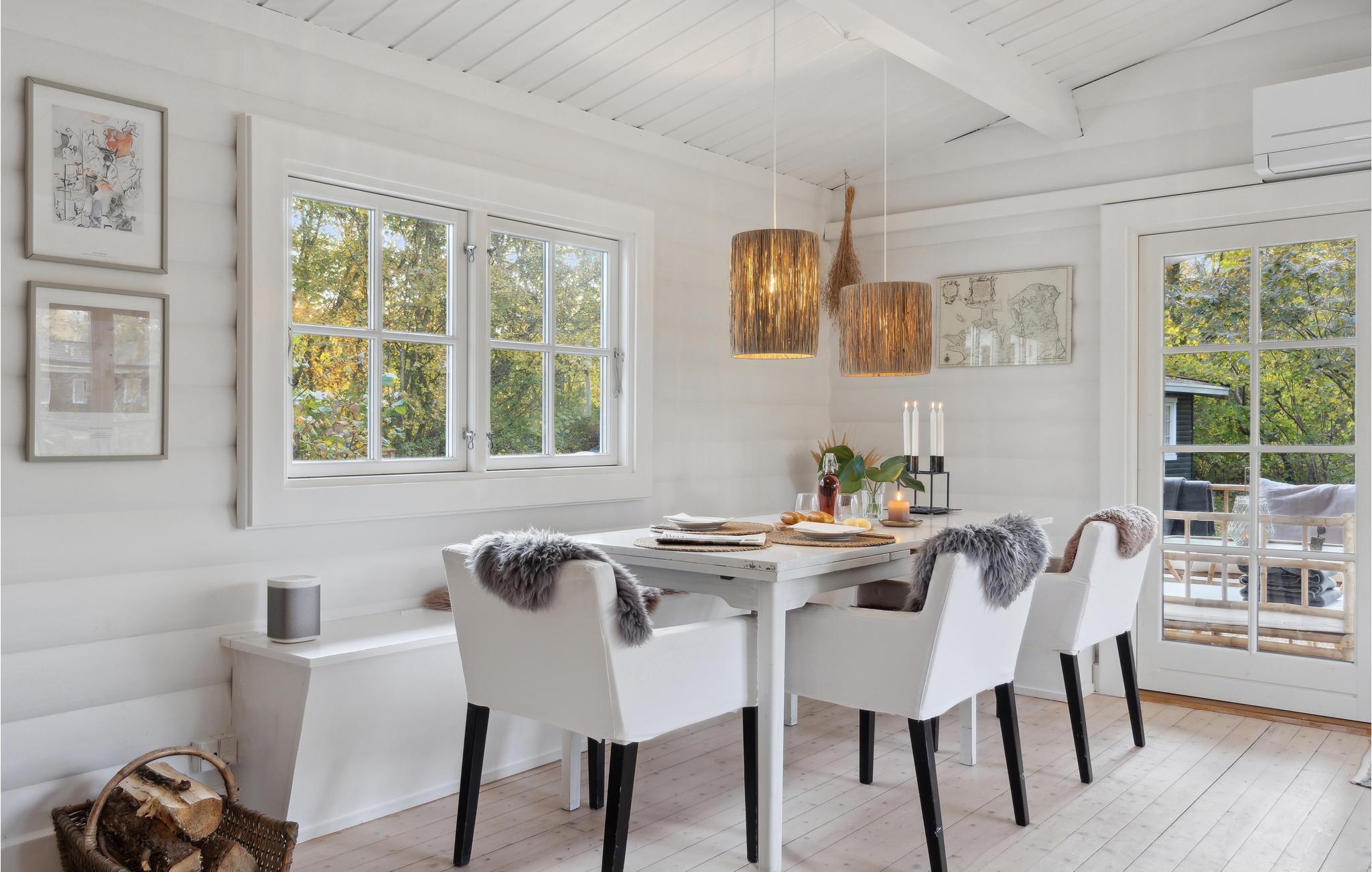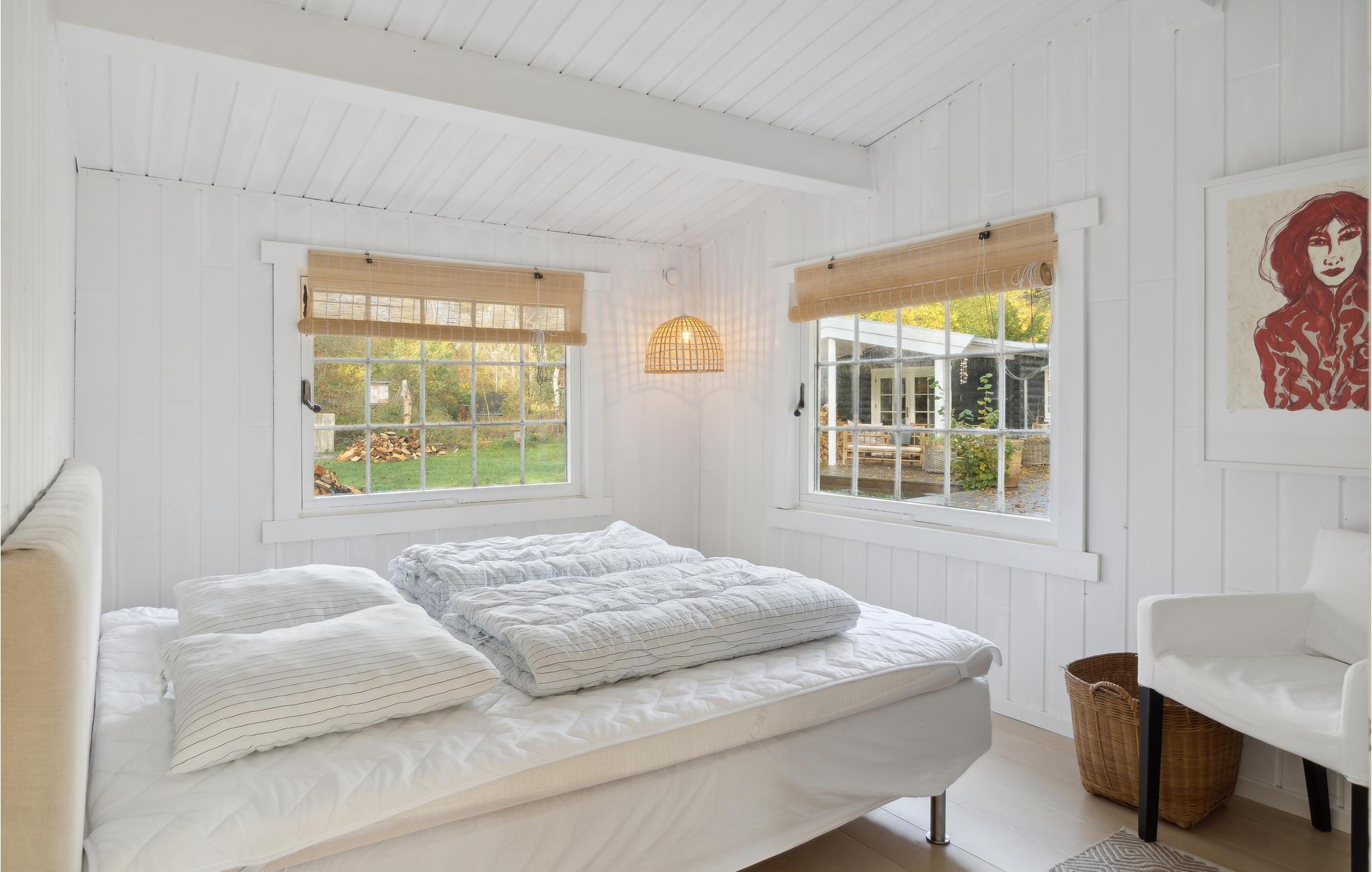 Der er masser af lys og luft på denne grund, som har en skøn placering tæt ved vandet til flere sider. Her kan I tilbringe nogle dejlige feriedage og nyde freden og roen i det elegante hus, som emmer af kvalitet og klassisk sommerhusstemning. Efter en lang dag på farten kan I læne jer godt tilbage i sofaen, spille brætspil, give jer god tid til måltiderne og nyde varmen fra brændeovnen på en kølig aften.
