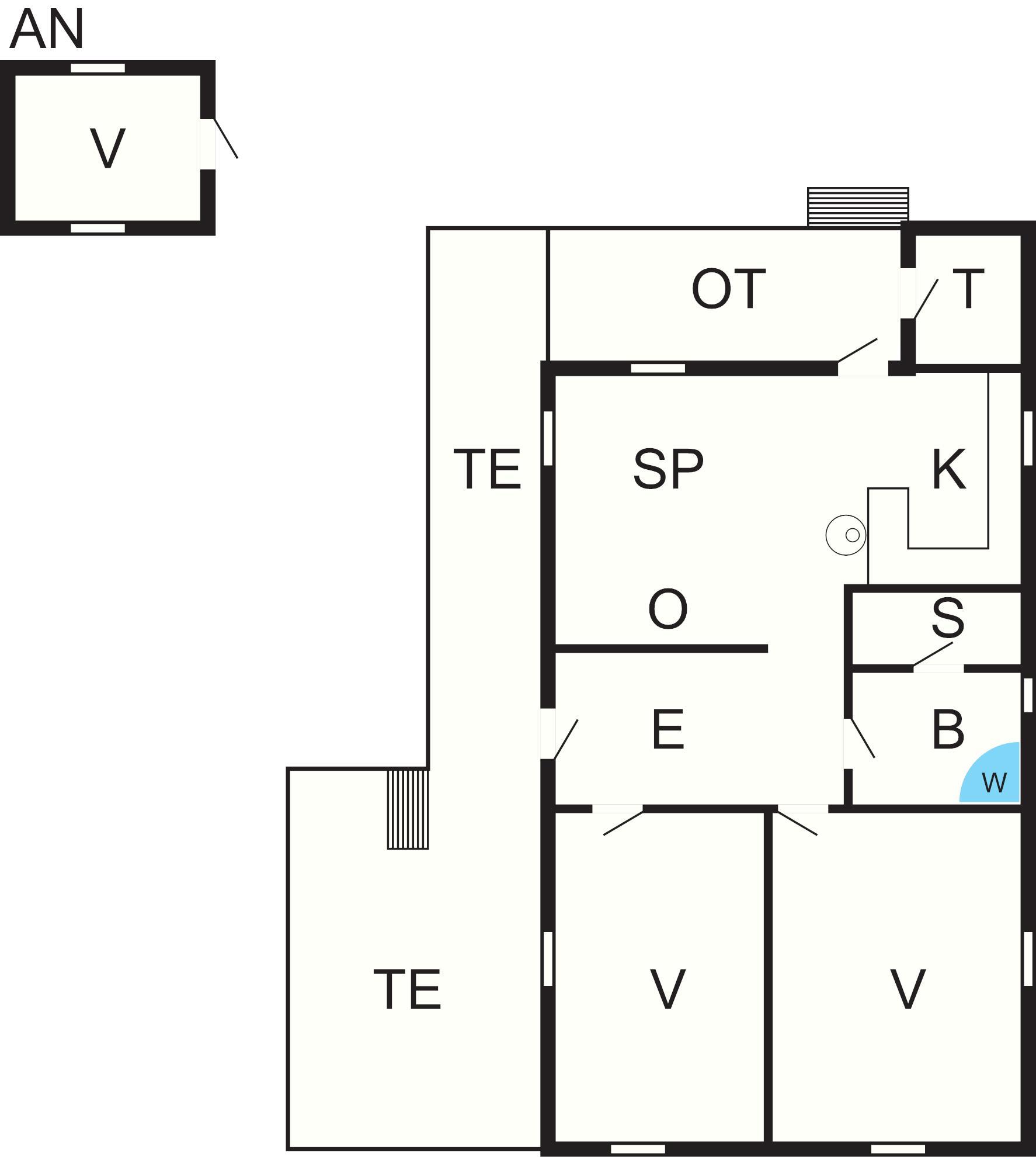 Ved siden af ??hovedhuset giver et separat anneks to ekstra sovepladser, ideel til at rumme ekstra gæster eller familiemedlemmer. En terrasse løber langs husets længde, mens stuen åbner ud til en overdækket terrasse, der byder på et hyggeligt uderum, der kan nydes i både solskinsvejr og regnvejr. Kombinationen af ??indendørs komfort og udendørsarealer gør det til en alsidig ejendom til både afslapning og socialt samvær.