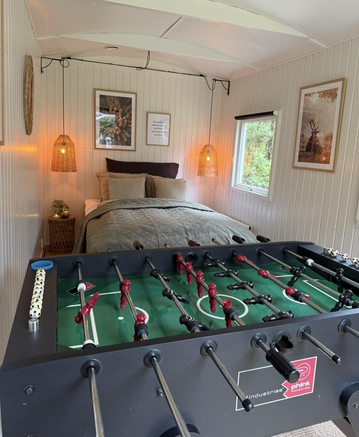 Den store, lyse og velmøblerede stue har brændeovn, spiseplads til 10 personer, hyggelig sofaafdeling med SMART-TV med danske gratis kanaler og chromecaster, playstation, radio samt dejlig krog med 2 gode lænestole. Stuen har udgang til terrasse og ligger i åben forbindelse med lækkert, lyst og rustikt landkøkken med keramiske kogeplader, ovn, køle-/fryseskab og opvaskemaskine. Der er 10 sovepladser fordelt på 3 dobbeltsenge og 2 rummelige køjesenge. Alle værelser med udgang til terrasse og 2 af dem med udgang til spa og udebruser. To skønne, nye badeværelser med gulvvarme, det ene med direkte adgang til træterrasse med udebruser og spabad. Spabadet tager 1/2 døgn om at være klar til brug. Desuden er der en kombineret vaskemaskine og tørretumbler samt pusleplads til de mindste. På grunden er en charmerende togvogn med plads til masser af leg og hygge. Internetadgang.