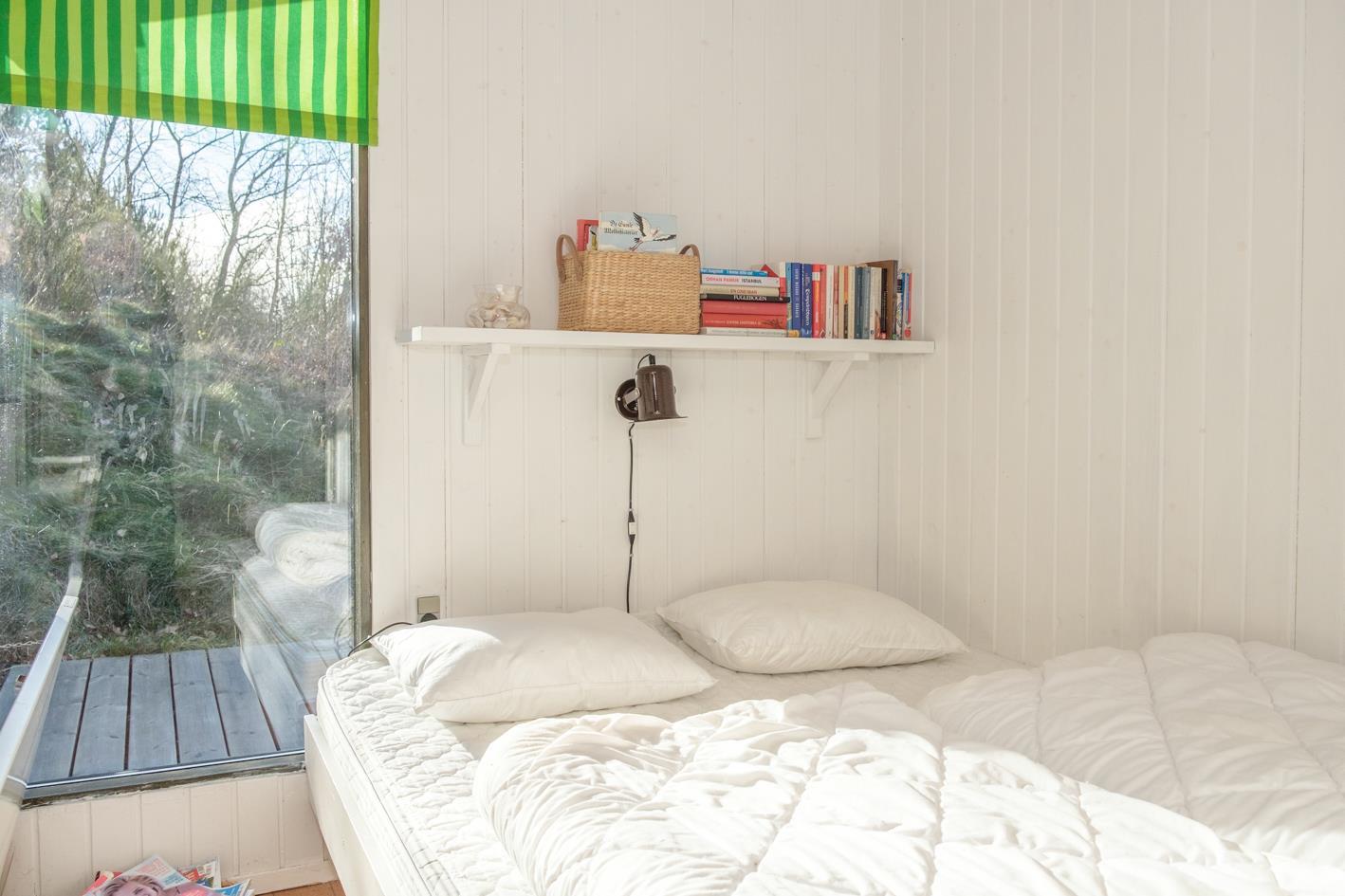 De store vinduespartier giver masser af lys i den rummelige stue, hvor man kan nyde udsigten til naturen. Her er magelige lænestole, spisekrog til 8 personer med faste bænke og 4 stole, TV med danske (inkl. TV2) og tyske kanaler, DVD- og CD-afspiller samt radio. Det veludstyrede køkken ligger i åben forbindelse med stuen og har keramiske kogeplader, ovn, køle-/fryseskab, opvaskemaskine og mikrobølgeovn. Husets 8 sovepladser fordeler sig på 2 værelser med dobbeltsenge og 2 værelser med køjesenge. Pænt badeværelse med bruseniche og gulvvarme. Den nyinstallerede varmepumpe giver et behageligt indeklima i hele huset og lavt energiforbrug. Til de mindste er der barneseng og højstol. Internetadgang. For en beskeden pris kan der tilkøbes adgang til det nybyggede anneks, som bl.a. rummer legetøj og 5 gode cykler til voksne.