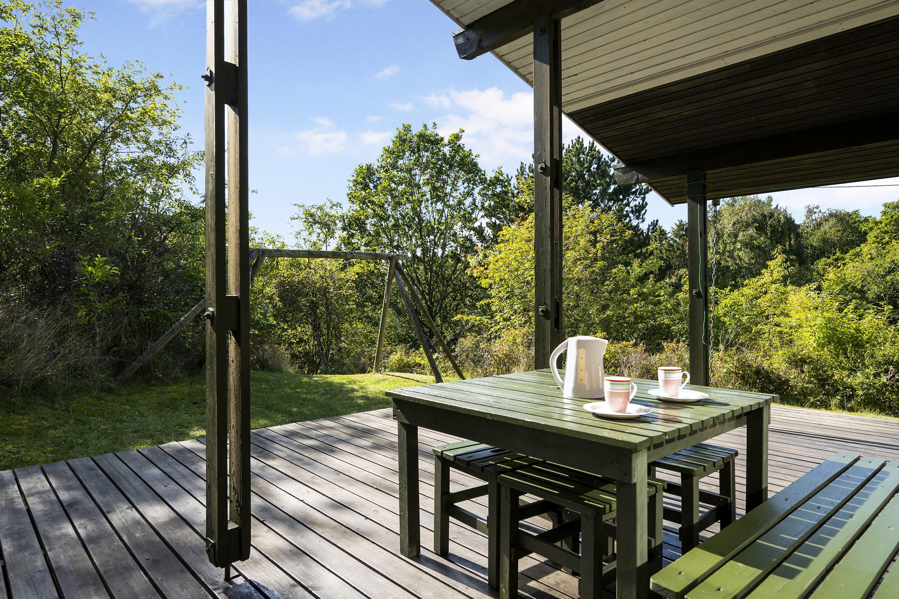 Hyggeligt sommerhus i Ebeltoft med stor terrasse, naturgrund og moderne faciliteter for en afslappende ferie.