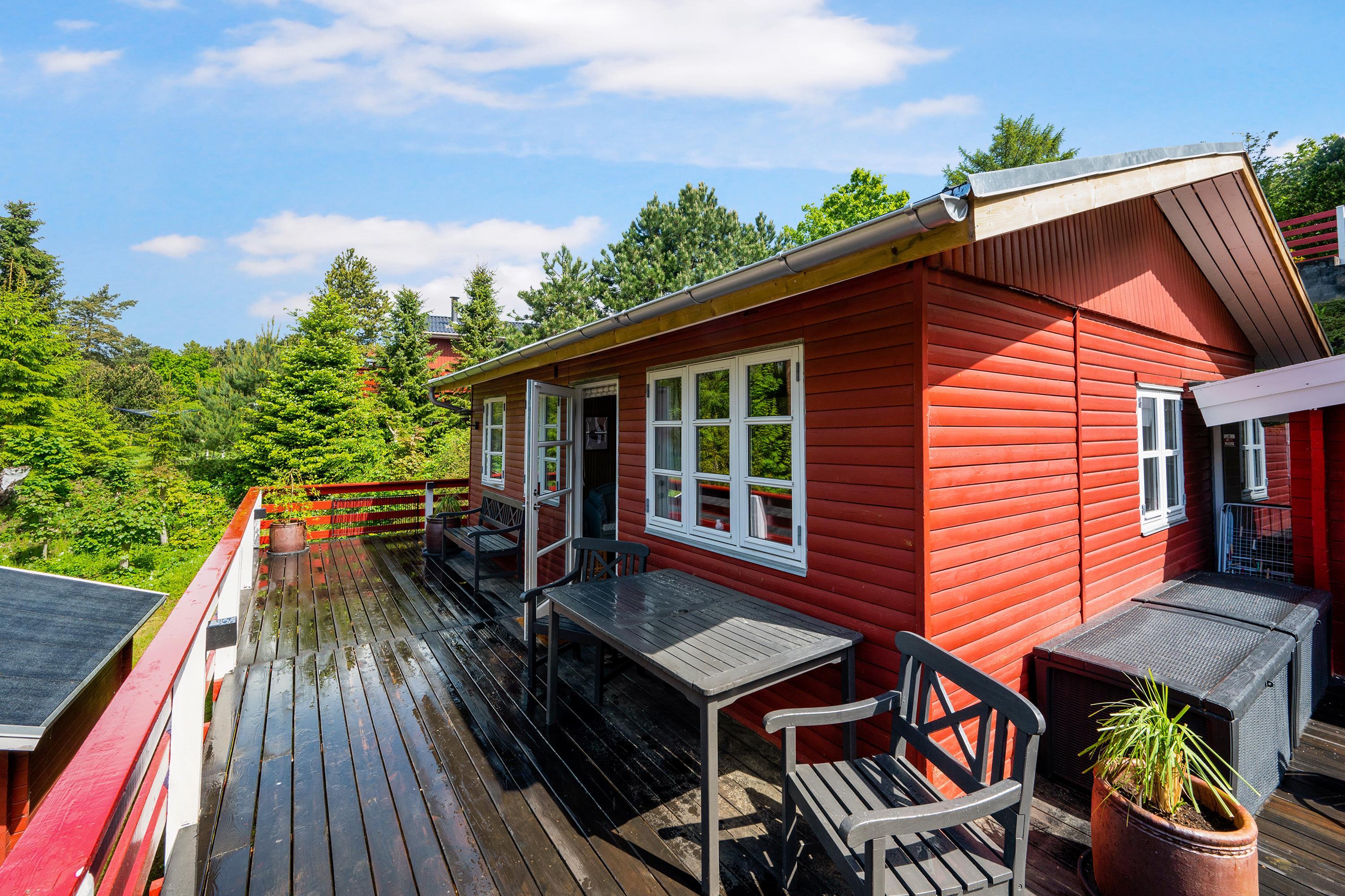 Naturskønt beliggende i hyggeligt skovområde få km fra Ebeltoft centrum, med badestrande mod øst og vest samt i gåafstand til Golfbanen, finder man dette charmerende feriehus. Skøn, sydvestvendt træterrasse med flot udsigt over den skrånende grund, hvor man bl.a. kan se græssende råvildt. Her er gode havemøbler, liggestole, parasol og grill.