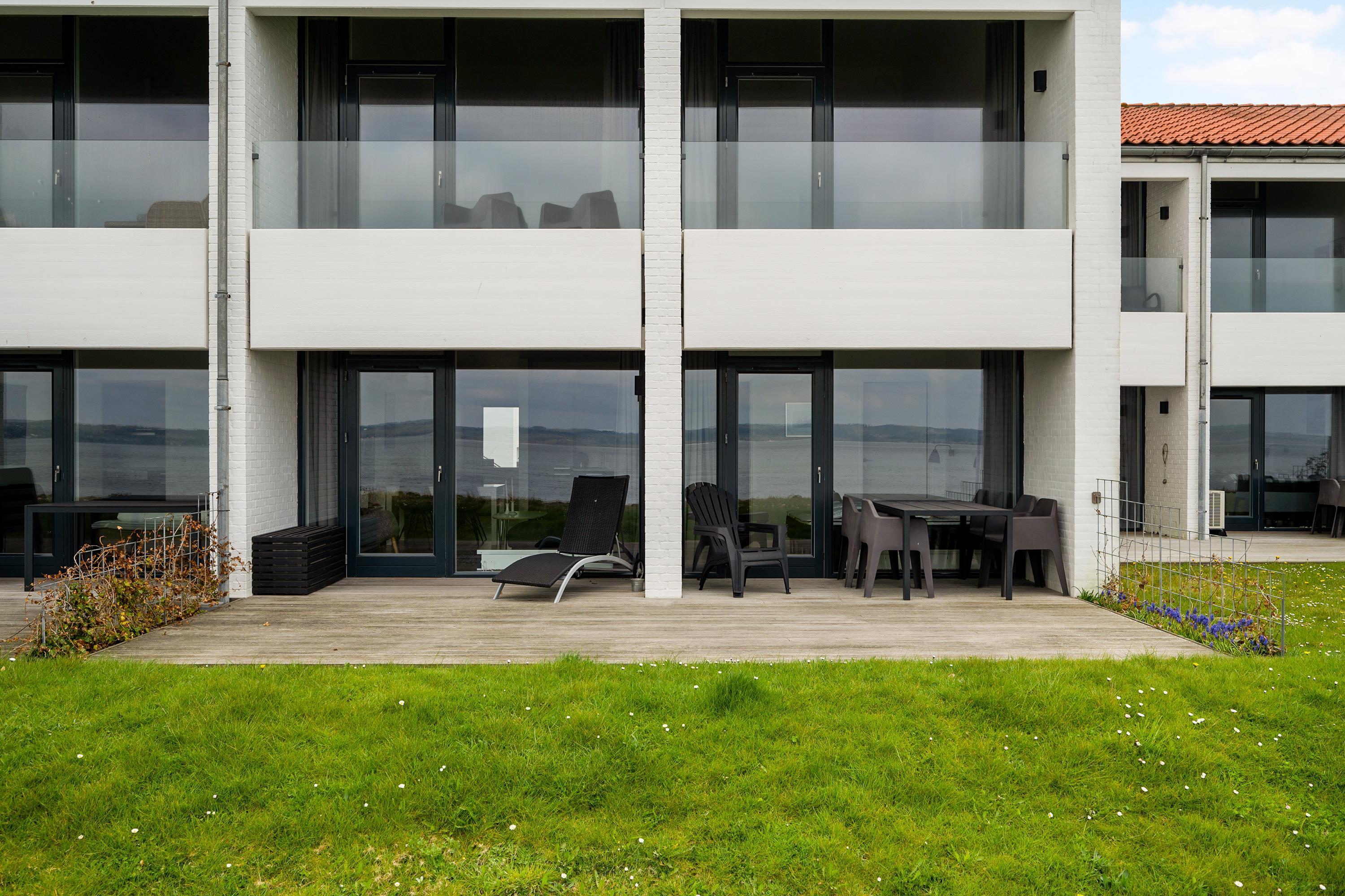 Lys ferielejlighed i 1. række ved Ebeltoft Vig med terrasse, tæt på badestrand og bymidte.