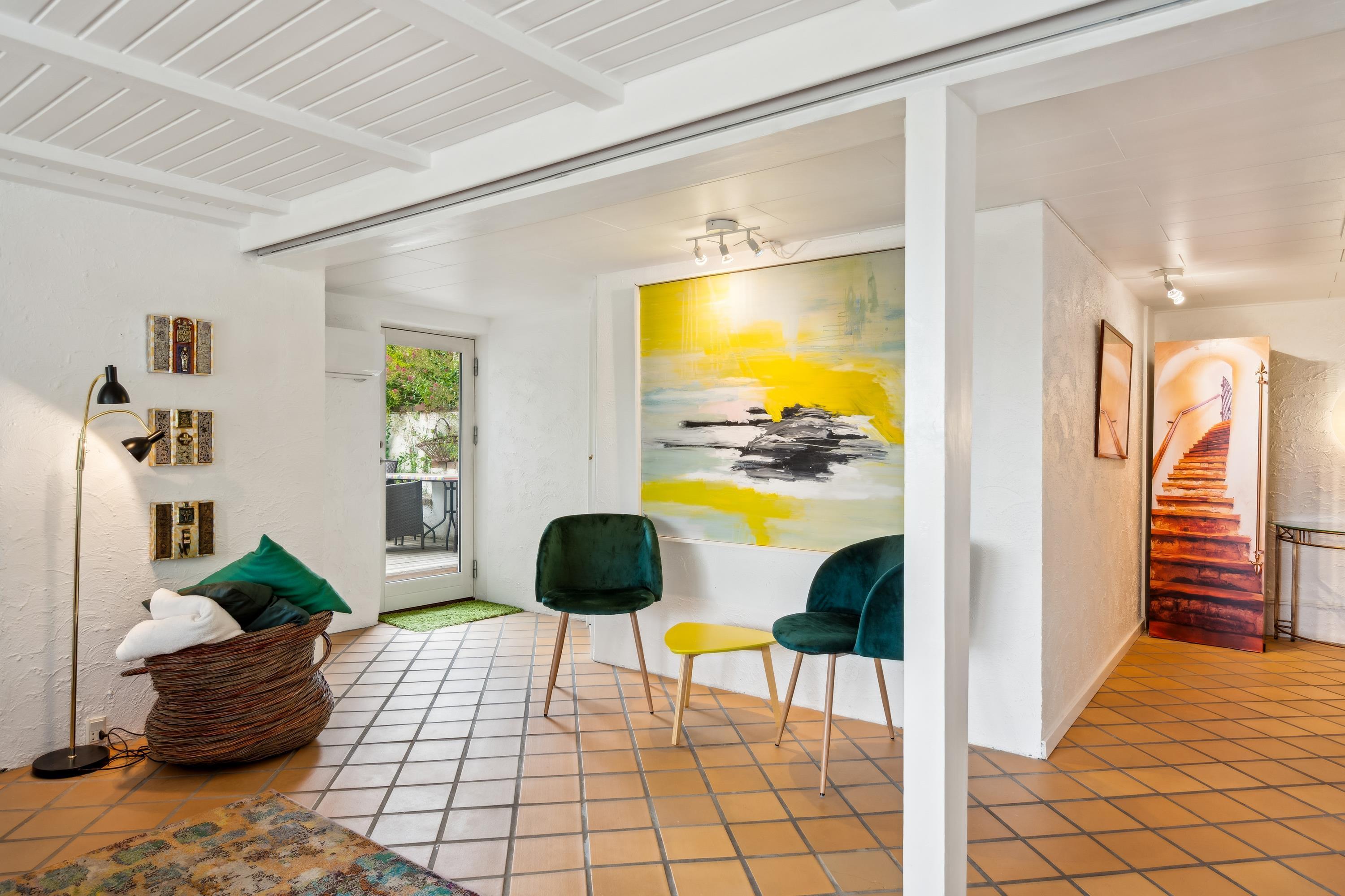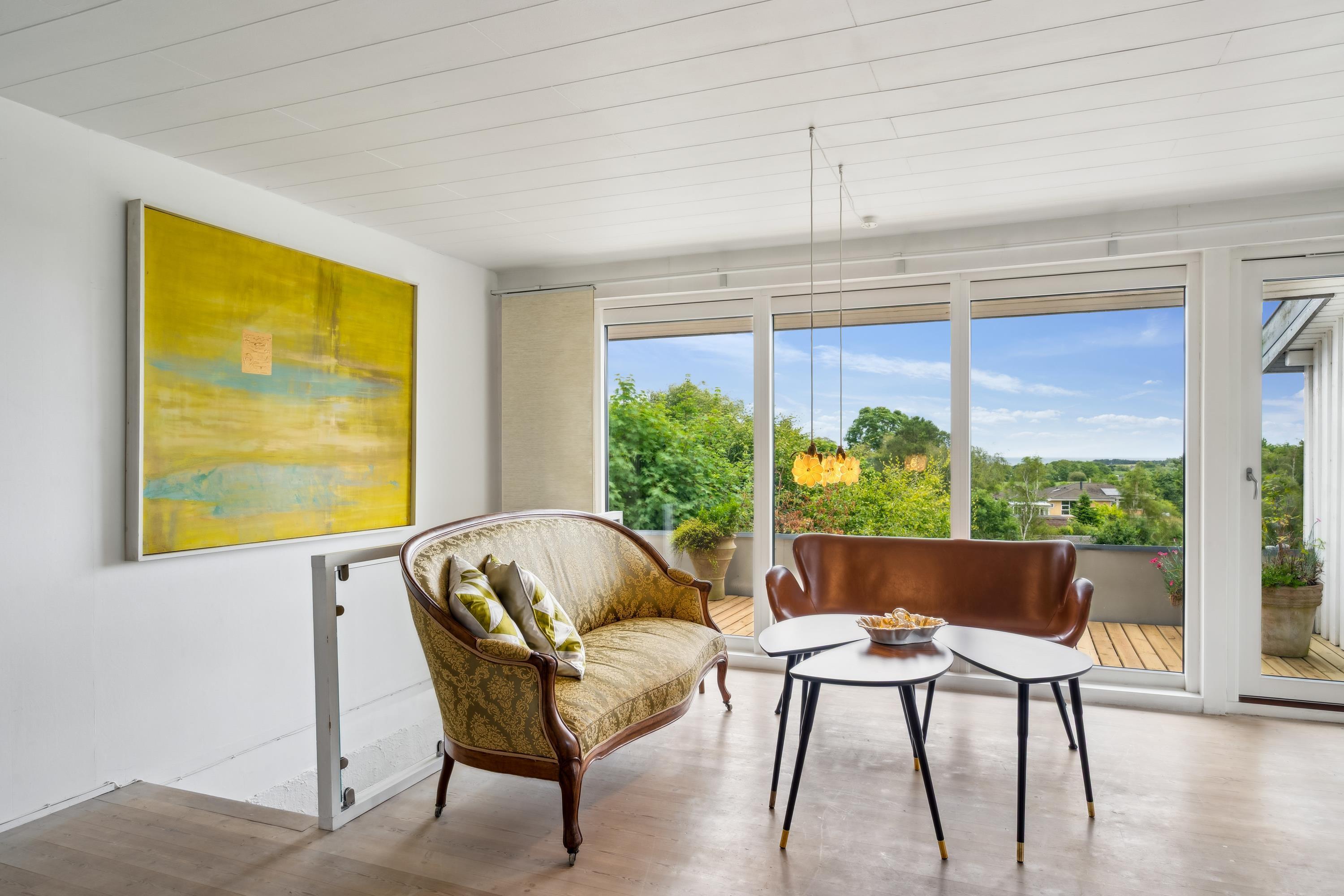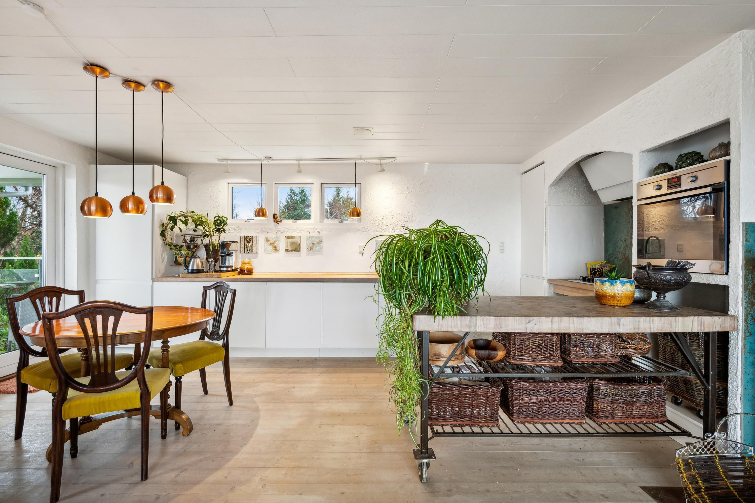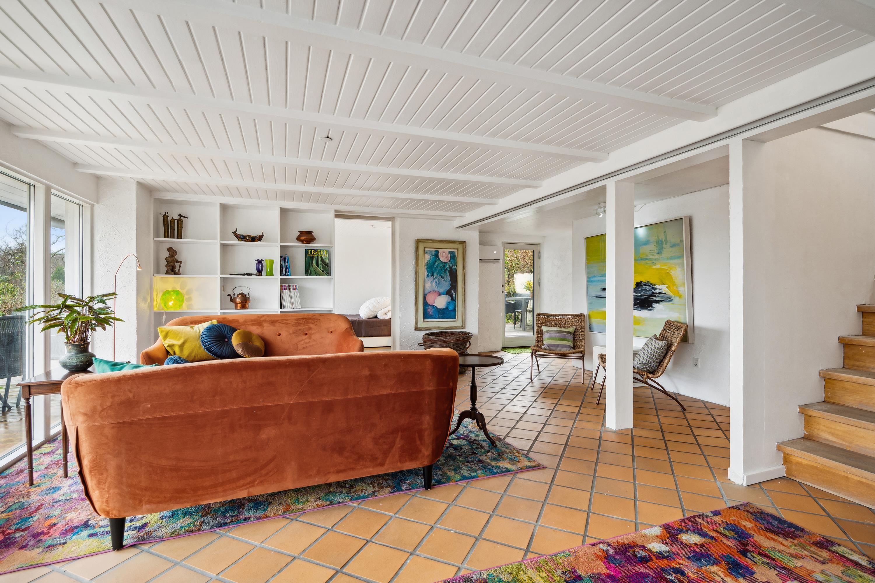Tæt på Ebeltoft By finder man dette unikke og rummelige feriehus i to plan. I stueplan finder man en hyggelig stue med brændeovn, samt spiseafdeling der ligger i forbindelse med det hyggelige køkken. Her er udgang til den store terrasse med havemøbler og den smukkeste udsigt, hvorfra man i det fjerne kan se vandet ved Boeslum Strand. I stueplan finder man også to store soveværelser med dobbeltsenge samt badeværelse med bruseniche. I underetagen finder man den hyggelige opholdsstue- også herfra er der udgang til en skøn terrasse med havemøbler og liggestole. Endnu et dejligt køkken med opvaskemaskine og et skønt badeværelse. Tre hyggelige værelser, hvoraf det ene indeholder to dobbeltsenge. Der er også adgang til både vaskemaskine og tørretumbler. Der er nedgang til underetagen fra stueplan, men også separat indgang udefra. Der er internet i huset og TV foregår via Chromecast. Der er lige lavet en spritny sauna ved underetagen. Ved huset er der flere skønne terrasser i forskudt plan og i haven finder man flere lækroge. Derudover findes der et skønt orangeri, hvor man kan tilbringe en kølig aften. Er man to eller tre familier afsted, er det her, det helt rette hus.