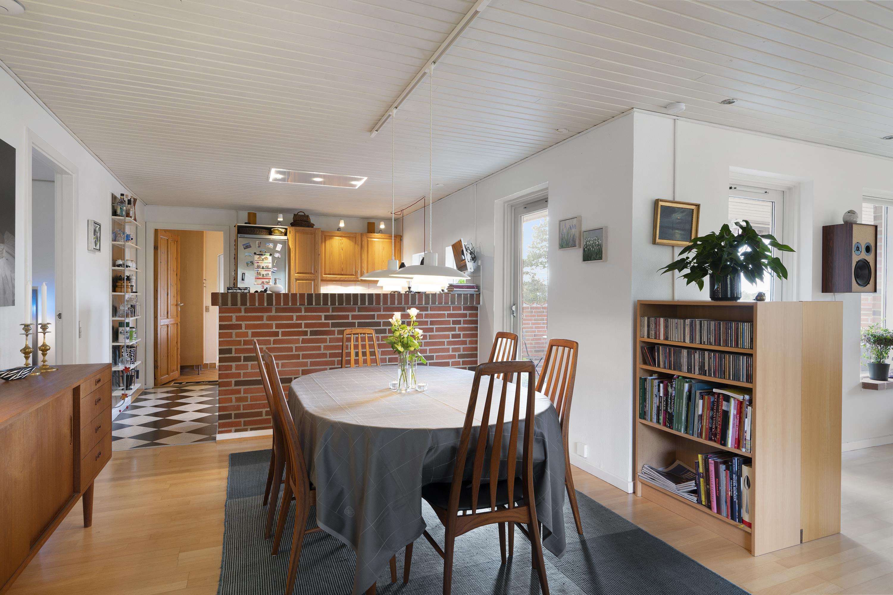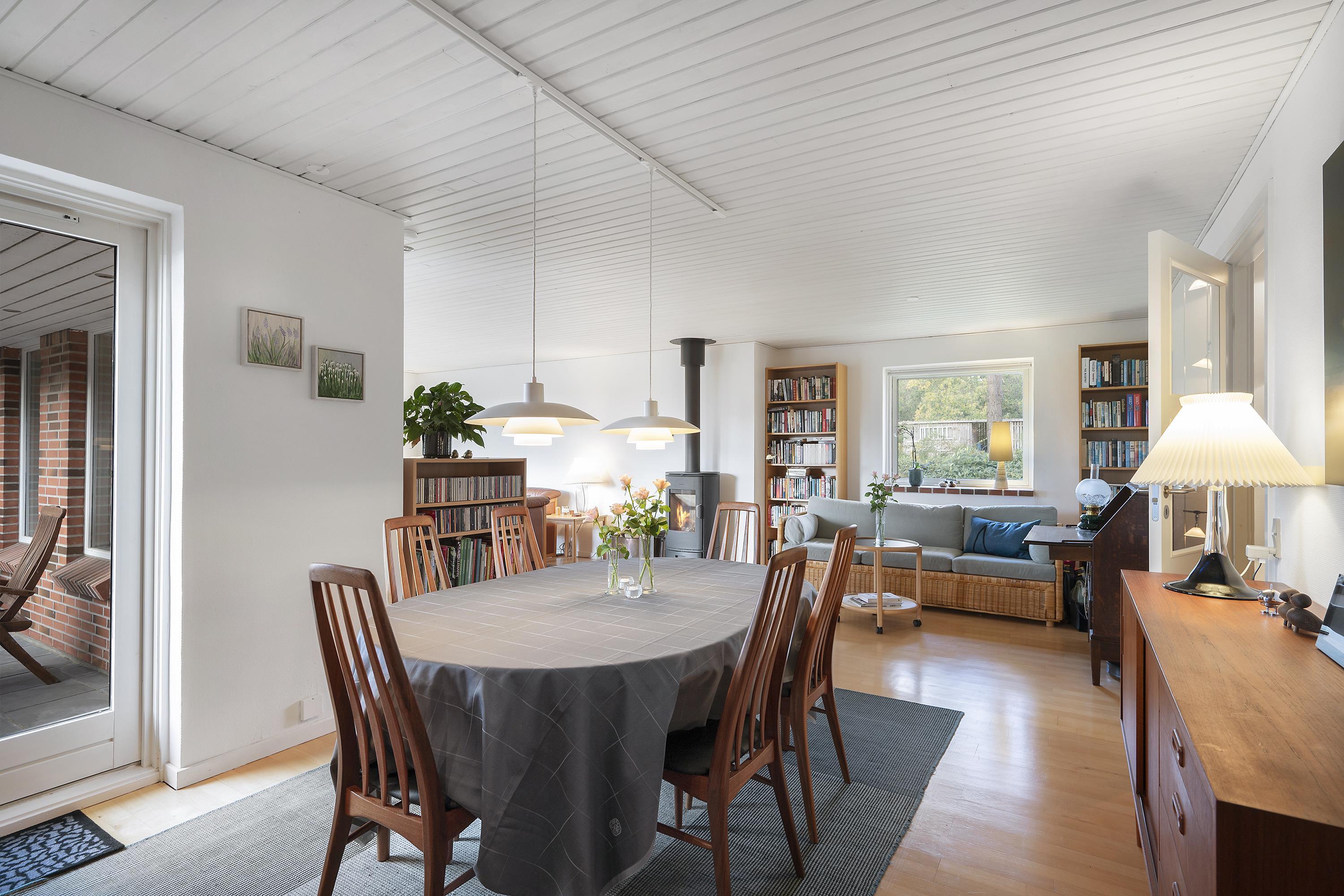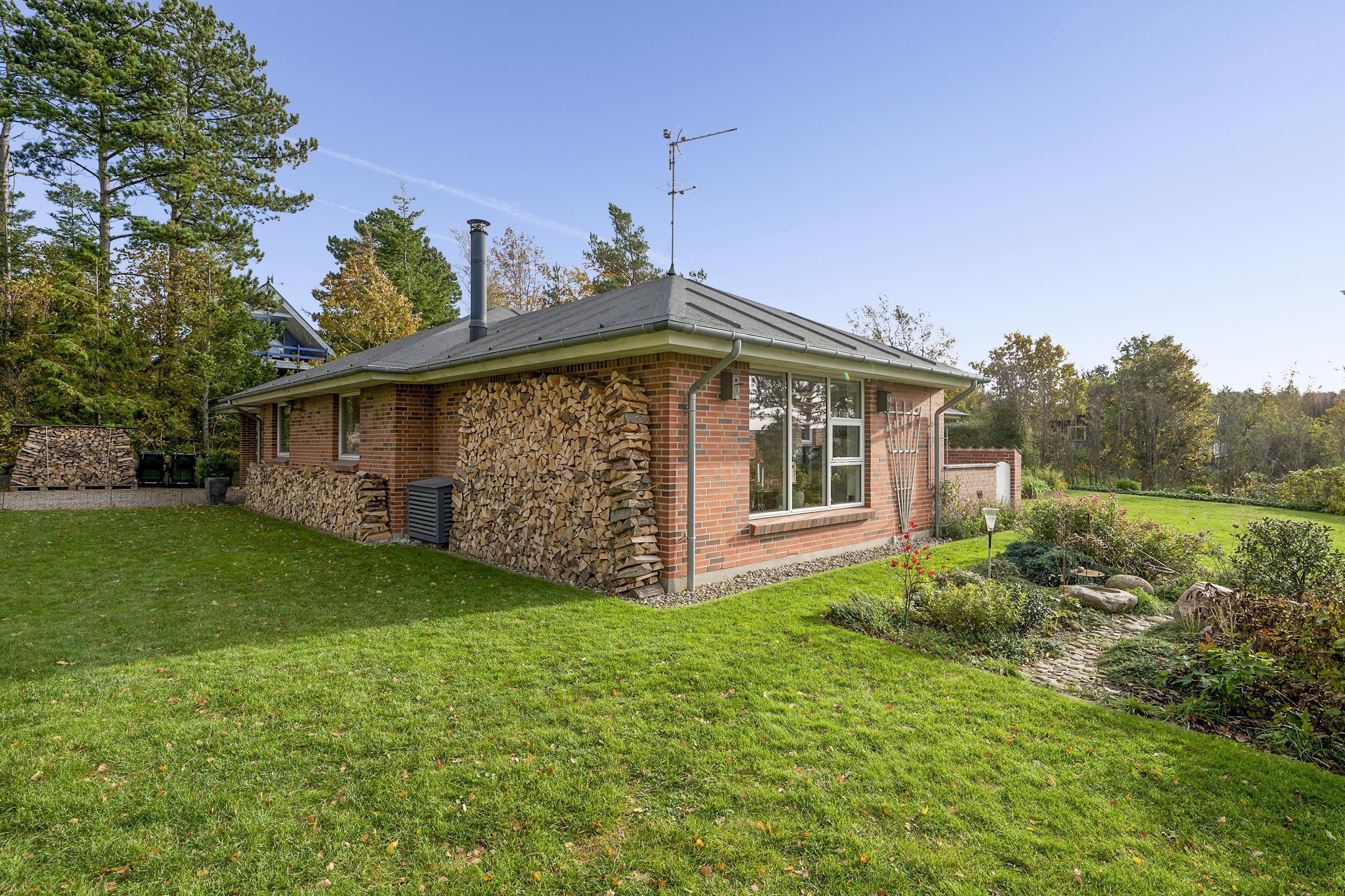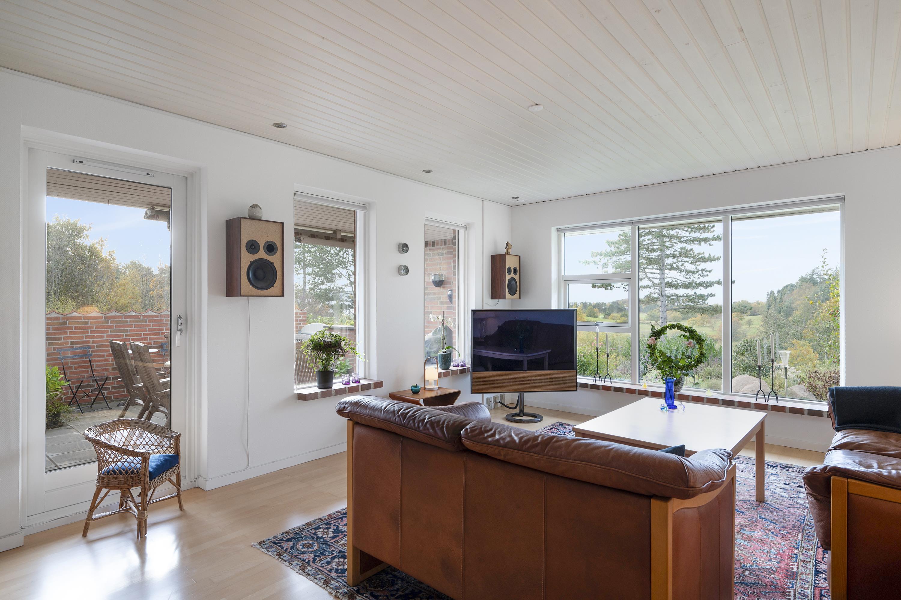 Med blot få kilometer til Ebeltoft centrum finder man dette dejlige hus, beliggende i et virkelig naturskønt område. Her finder man en skøn lys stue, stilfuldt møbleret med lækre møbler samt brændeovn. Herfra er der udgang til en skøn terrasse med havemøbler, hvorfra man har den flotteste udsigt over landskabet. Dejlig spiseafdeling i forbindelse med det veludstyrede køkken med b.la. opvaskemaskine. Tre gode soveværelser med dobbeltsenge, hvorfra der fra det ene soveværelse er direkte adgang til et af de to badeværelser, der findes i huset. Der er adgang til vaskemaskine og tørretumbler. Huset er beliggende på en velplejet grund i et rigtig skønt kvarter i udkanten af Ebeltoft. El-ladestander ved feriehuset.