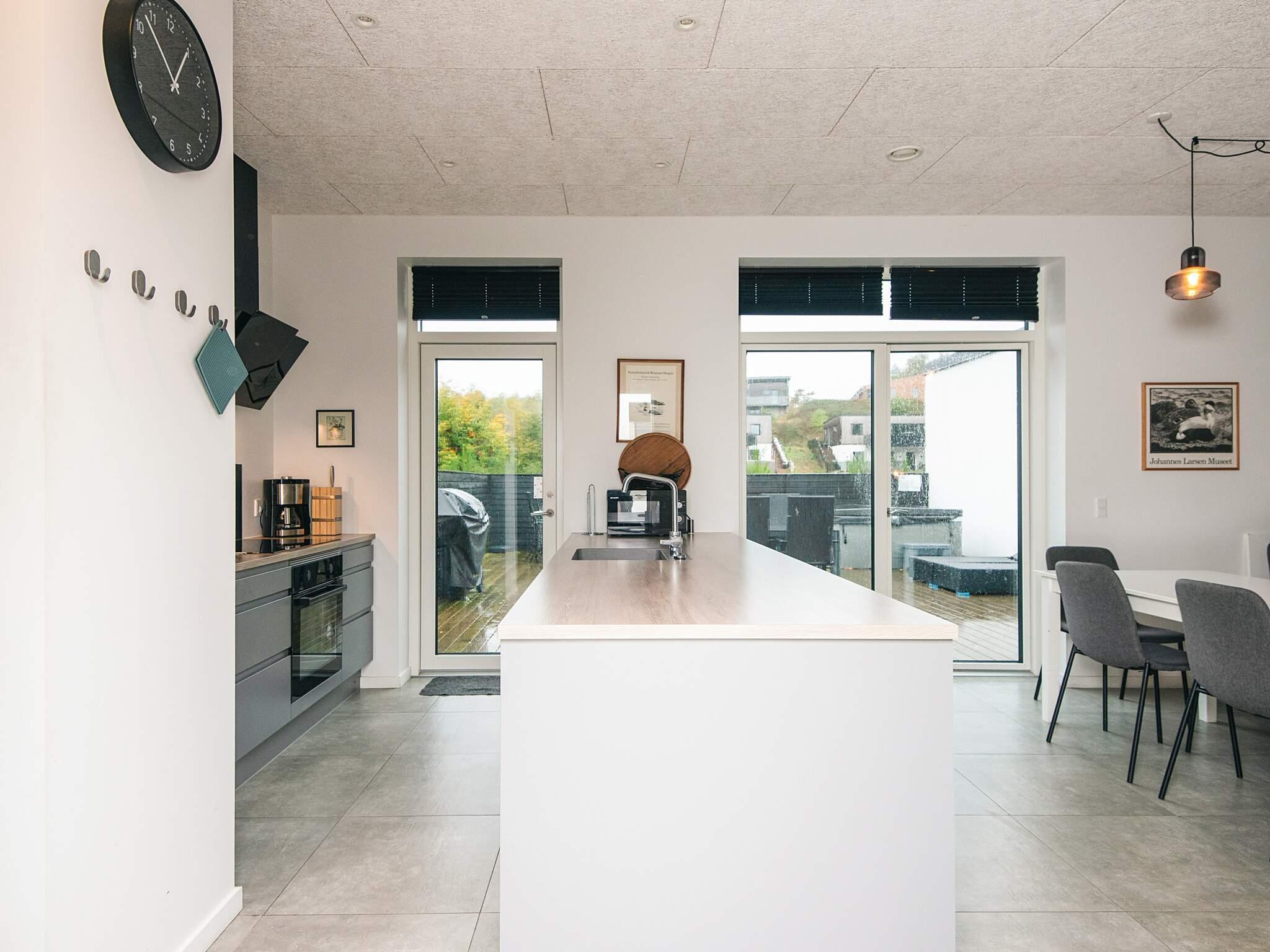 Der er rigt udstyret køkken med bl.a. opvaskemaskine, keramiske kogeplader og mikroovn. Spisestue/opholdsstue med en flot udsigt til grundstykket via det store glasparti med direkte udgang fra spisestuen til den store terrasse, som er møbleret med havemøbler samt en gasgrill.