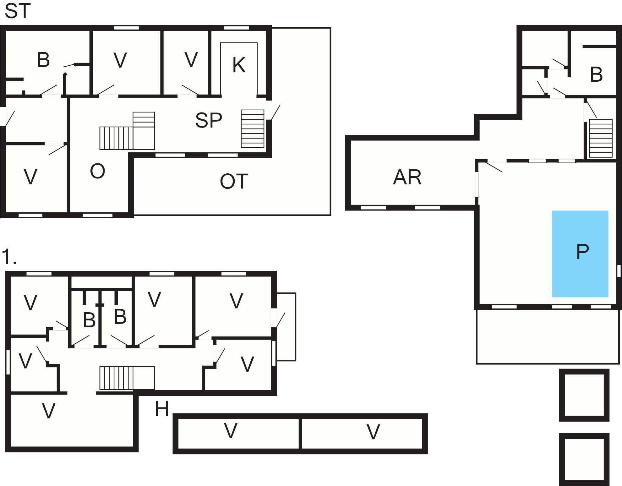 8 Soveværelser: (1DS)+(1DS)+(1DS)+(1DS)+(1DS+2K)+(1DS+2K)+(1DS+1S)+(1DS+1S)