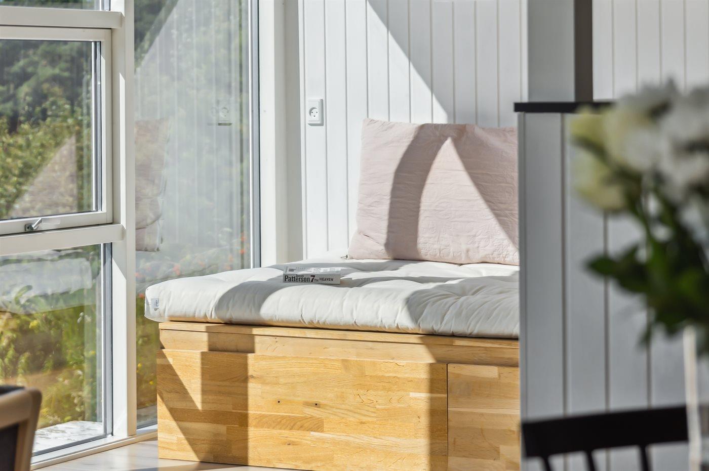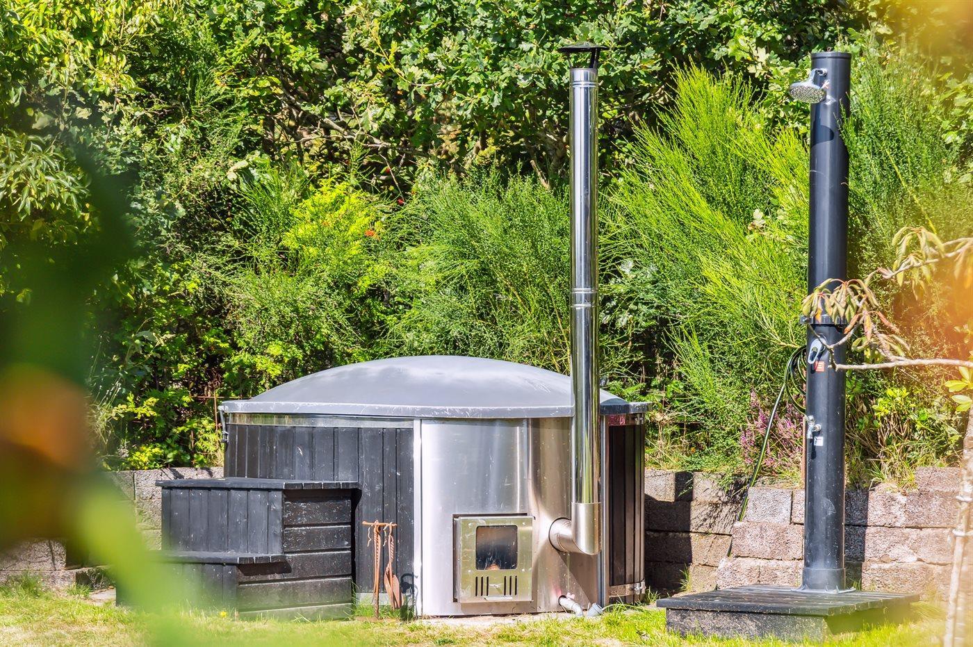 Huset er indrettet med 2 stuer, 2 badeværelser og 4 gode værelser og egner sig til op til 8 personer. I haven kan man finde en solbruser og et vildmarkskar, hvor man kan sidde og slappe af og nyde den skønne udsigt i det varme vand. Der er også en græsplæne, hvor der kan spilles bold og leges og ikke mindst er der i 2025 lavet en ny stor træ terrasse, hvorfra udsigten kan nydes.