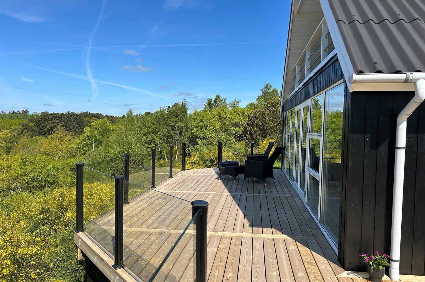 Velkommen til dette moderne sommerhus – som har en flot udsigt til flot kuperet landskabet, golfbane, en af byens ikoniske vartegn ”Den gamle Mølle” og vandet i horisonten. Huset ligger højt, så det føles næsten som om, at man sidder i trækronerne. I 2024/2025 har huset gennemgået en større renovering med blandt andet nyt køkken, 2 nye badeværelser, nye gulve, nye møbler og nyt inventar og i foråret 2025 er der lavet en ny træ terrasse.