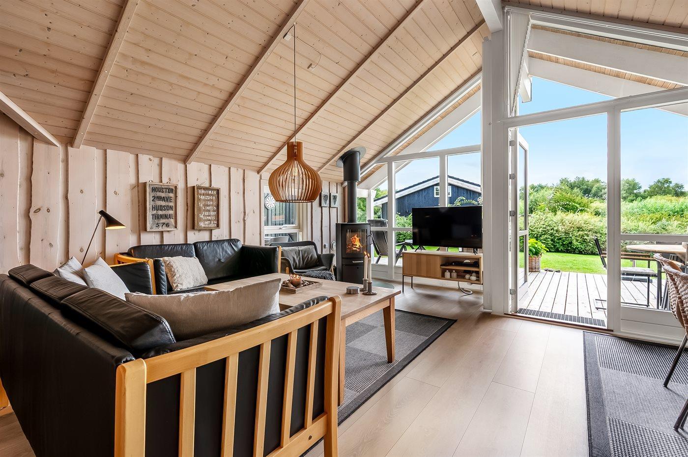 Ferieboligen er beliggende på en 1700 m² stor havegrund. Der er 500 m til havet. Nærmeste forretning er beliggende i en afstand af 500 m. Til ferieboligen hører åbent terrasseareal. Desuden er der overdækket terrasse. Gynge. Sandkasse. Fodboldmål. Bålsted. Shelter. Dart. Grill til rådighed. Der er installeret stik til opladning af elbil. Type 2 stik. Med 11 kW ladeeffekt. Parkering ved ferieboligen.