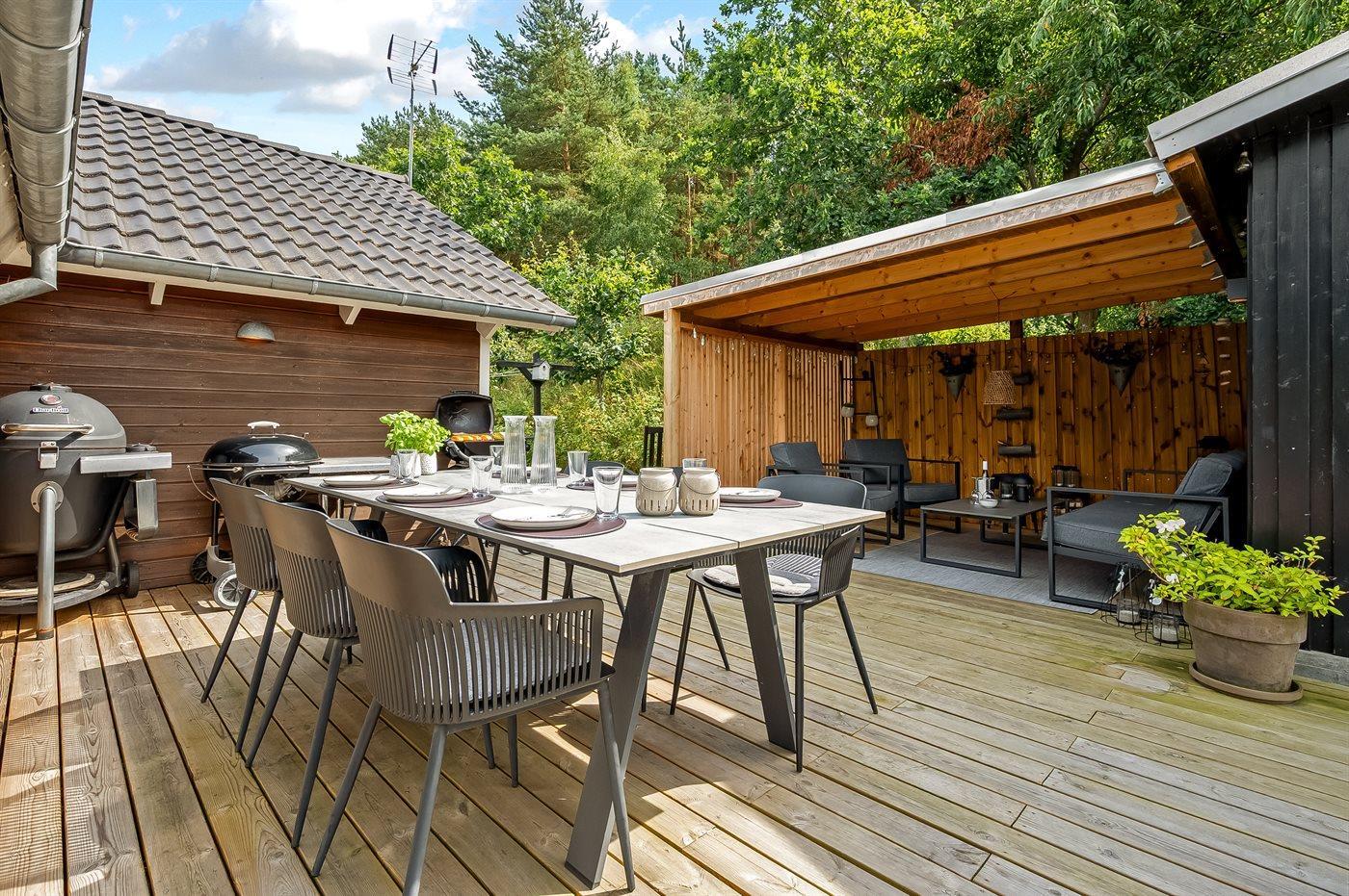 Moderne feriehus nær Ebeltoft med stor have, indendørs spa, sauna og bålplads – ideelt for familier.