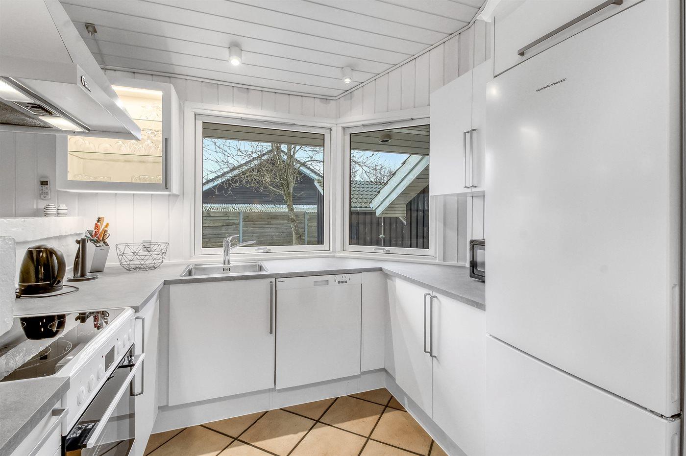 Køkkenet er udstyret med 1 køleskab. Der er 4 keramiske kogeplader, varmluftovn, mikrobølgeovn, Airfryer samt opvaskemaskine.