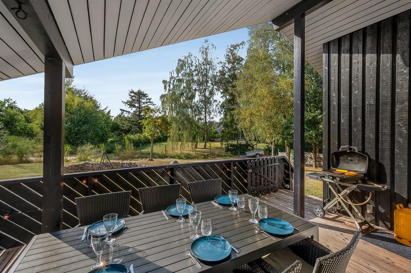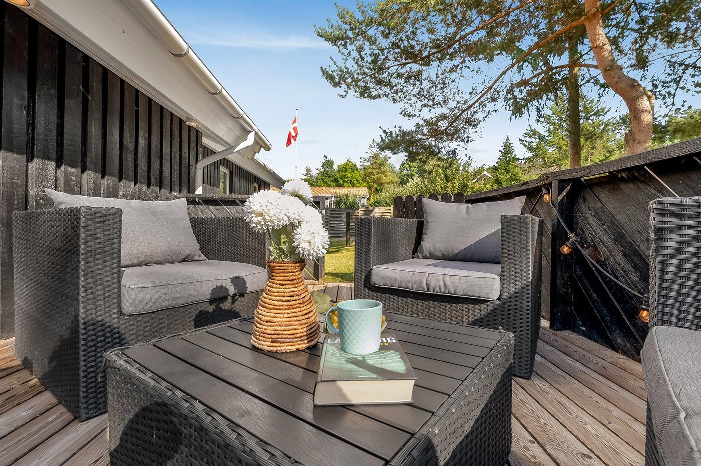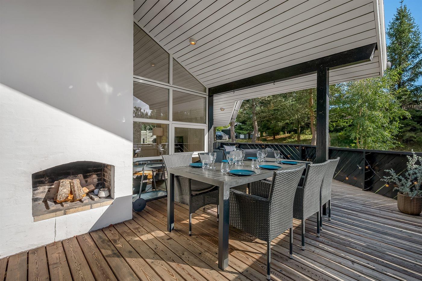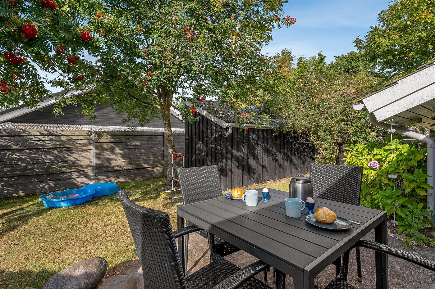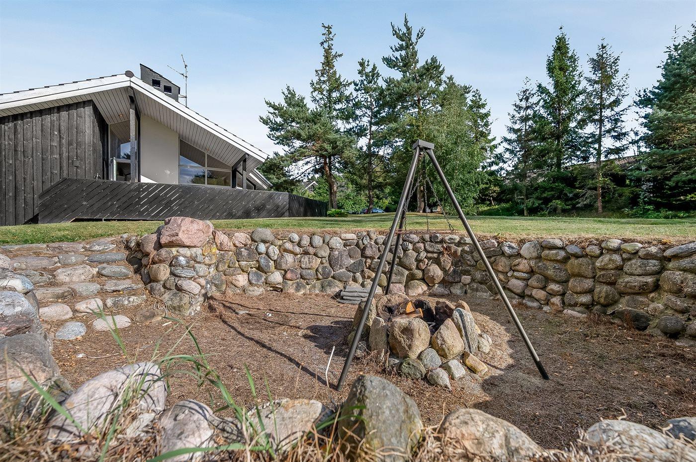 Den sydvendte og afskærmede terrasse inviterer til skønne aftener med grill og gode grin – og når solen går ned, er det oplagt at tænde op i bålet og hygge med skumfiduser og snobrød.