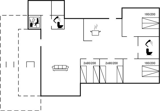 Der er i alt 4 soveværelser. Sovepladserne fordeler sig på: 4 sovepladser i dobbeltsenge. 2 sovepladser i enkeltsenge. 2 sovepladser i køjeseng. Derudover er der 1 stk. barneseng.