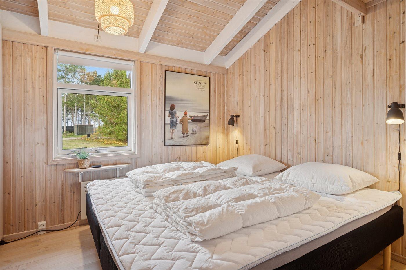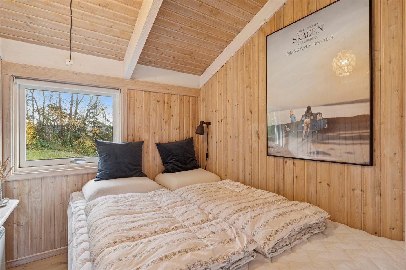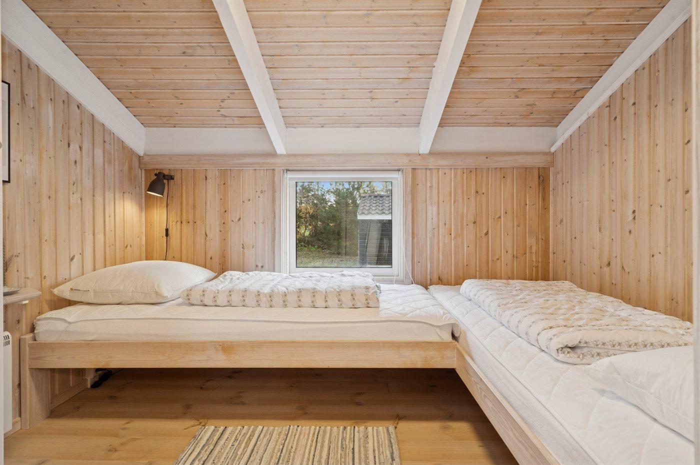 Der er i alt 3 soveværelser. Sovepladserne fordeler sig på: 4 sovepladser i dobbeltsenge. 2 sovepladser i enkeltsenge.
