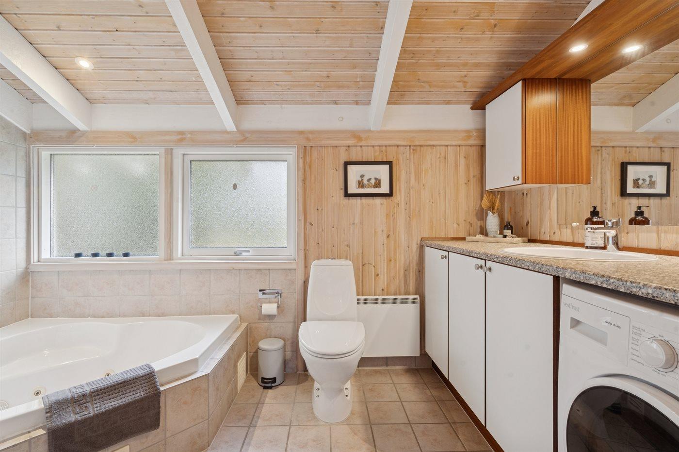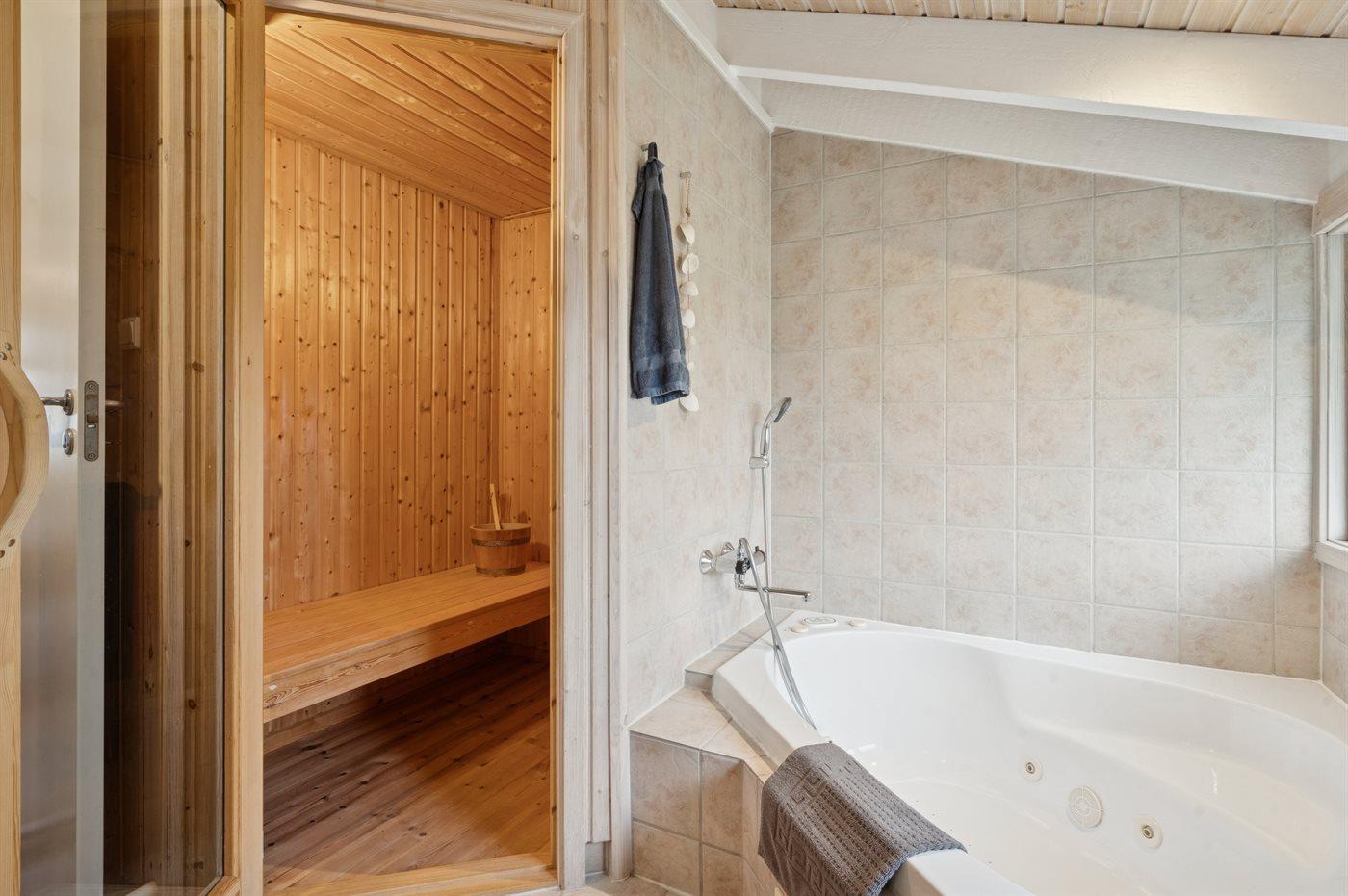 Der er 1 badeværelse med bruseniche og 1 toilet.. Der er gulvvarme på 1 badeværelse. I saunaen er der mulighed for afslapning.