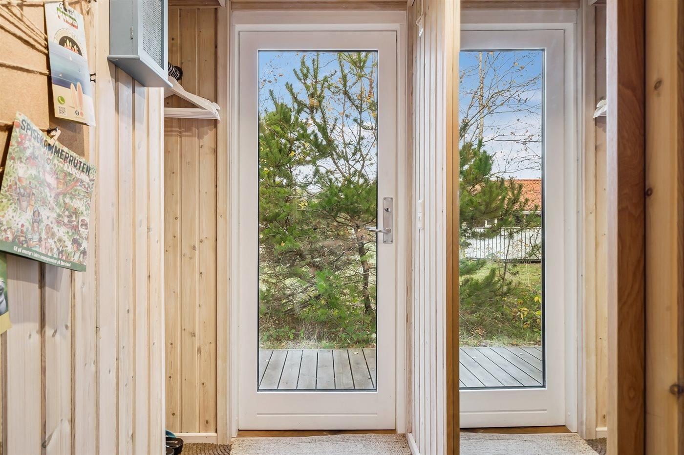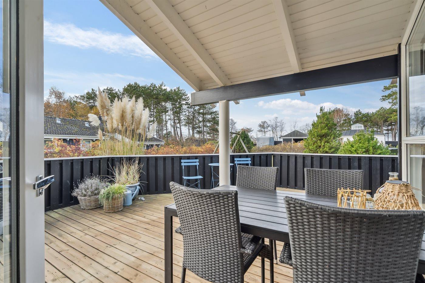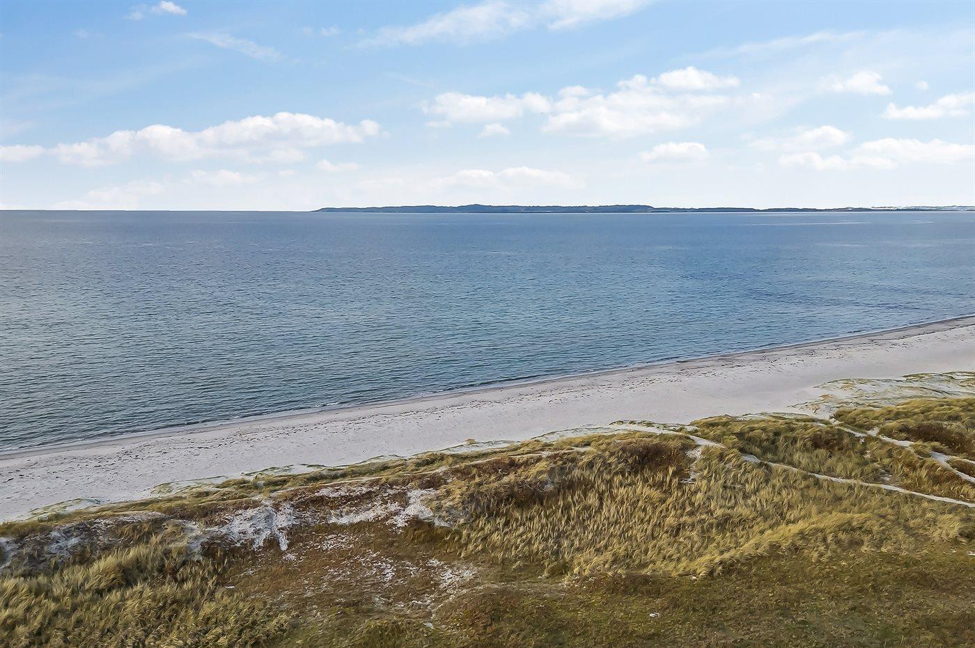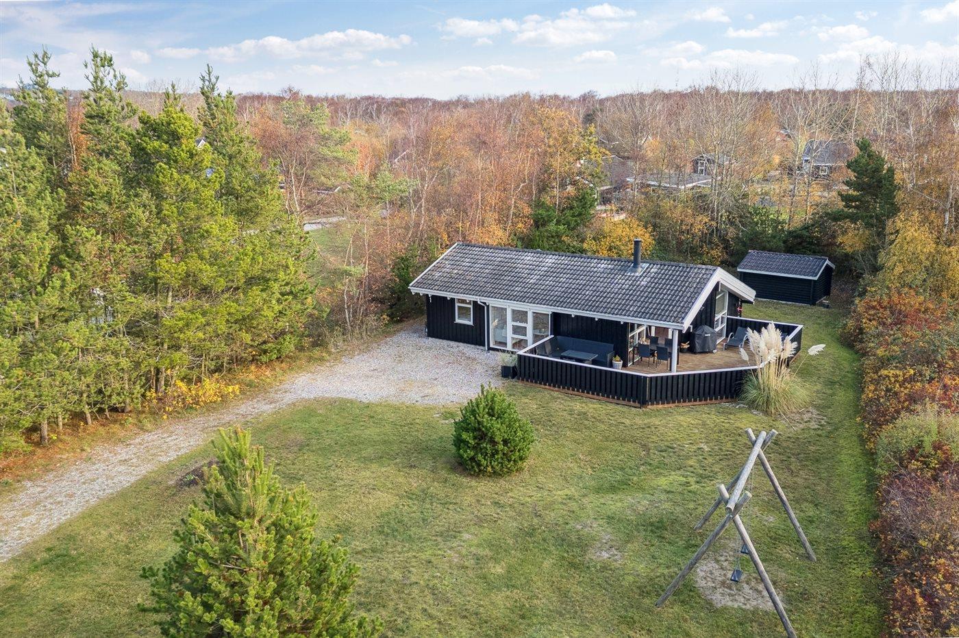 Ferieboligen er beliggende på en 1300 m² stor naturgrund. Der er 200 m til havet. Nærmeste forretning er beliggende i en afstand af 1300 m. Der er en golfbane i en afstand af 9200 m. Til ferieboligen hører 40 m² terrasseareal. Desuden er der 10 m² overdækket terrasse. Heraf i alt 25 m² lukket terrasse. Der er redskabsrum. Gynge. Grill til rådighed. Parkering ved ferieboligen.