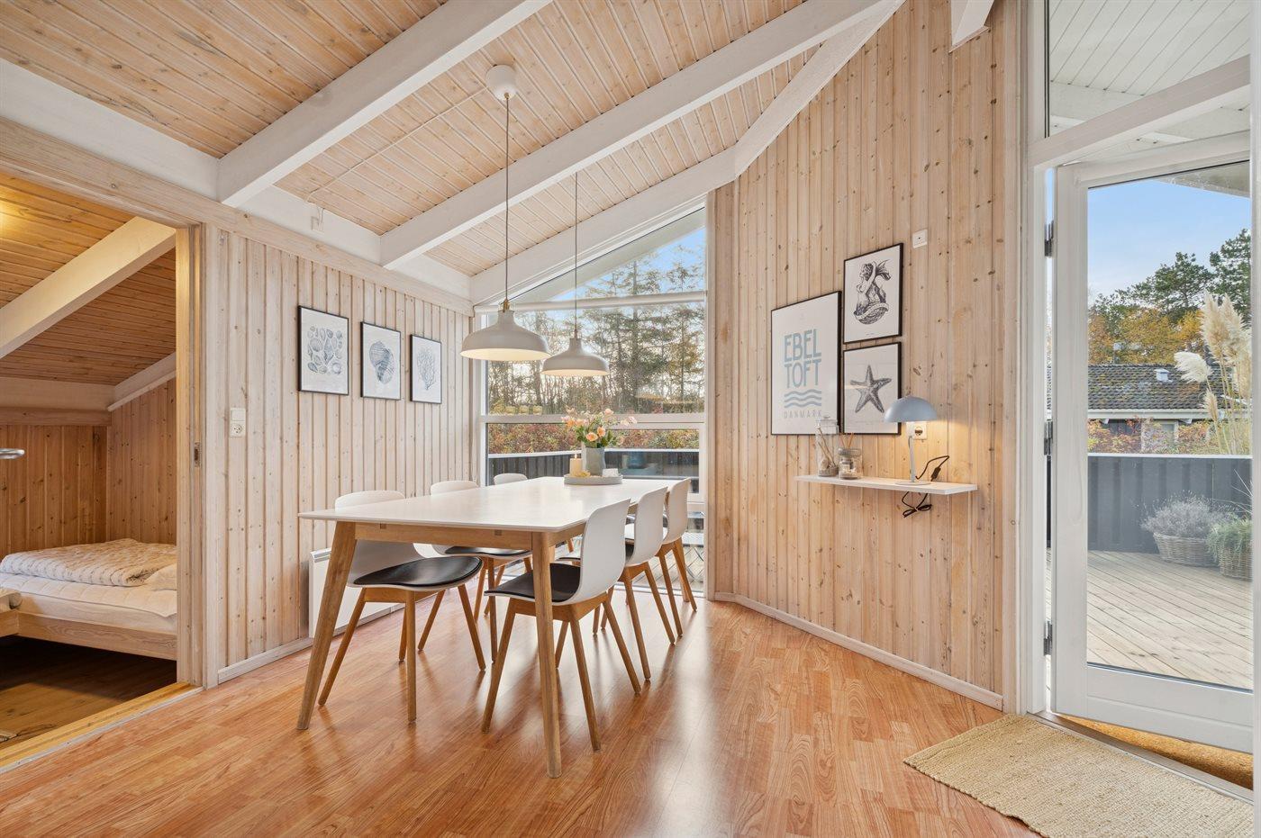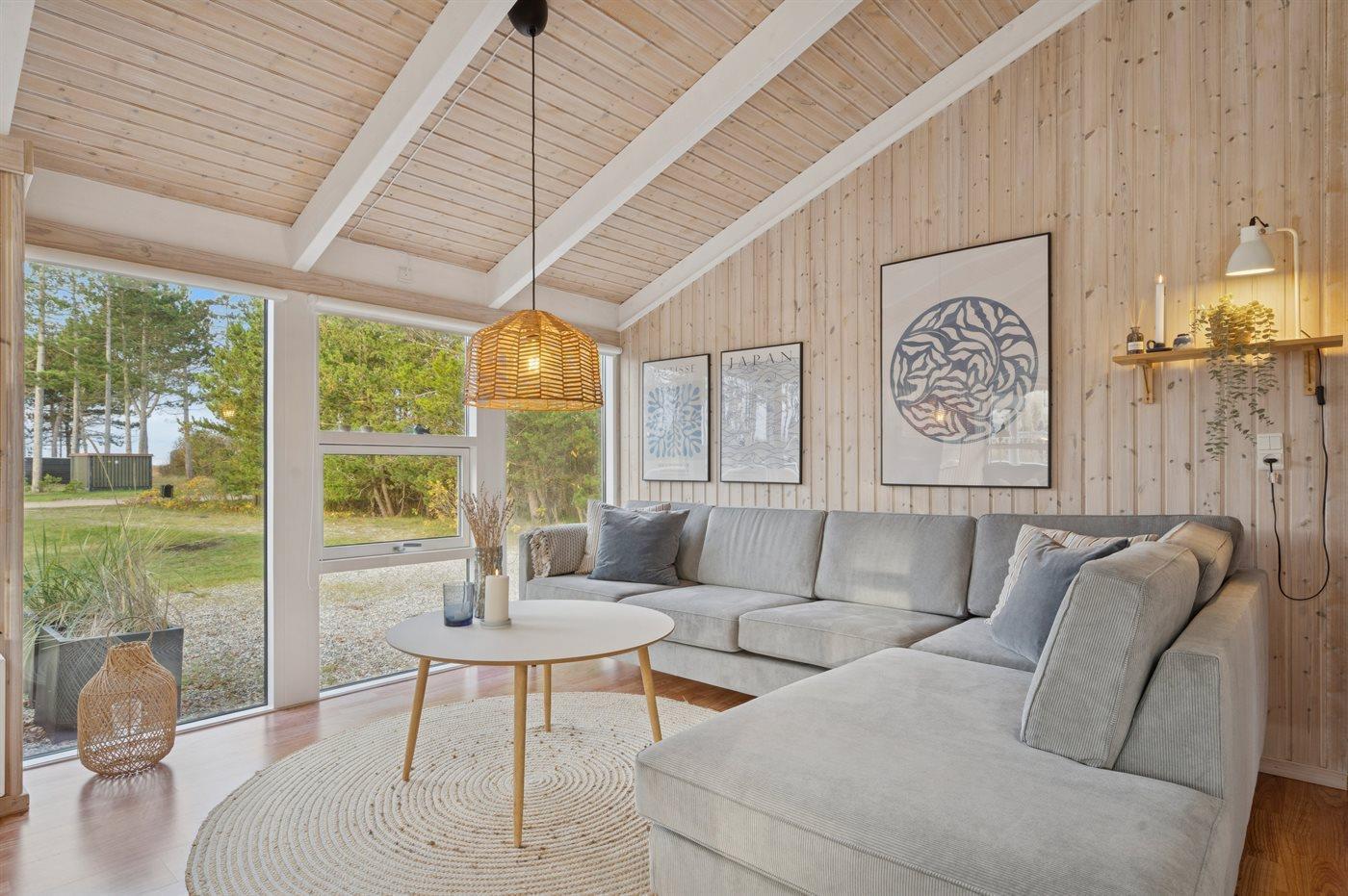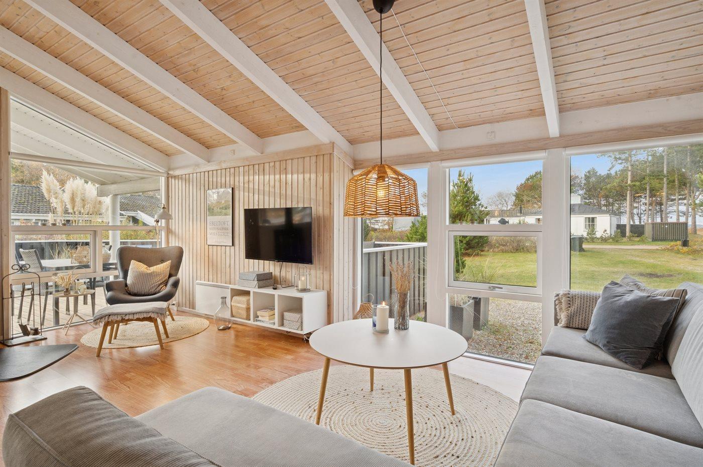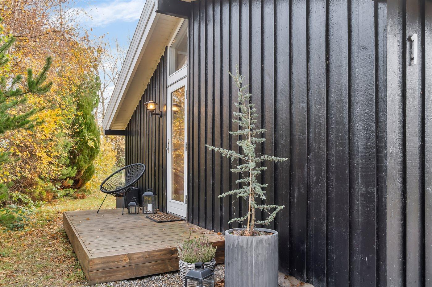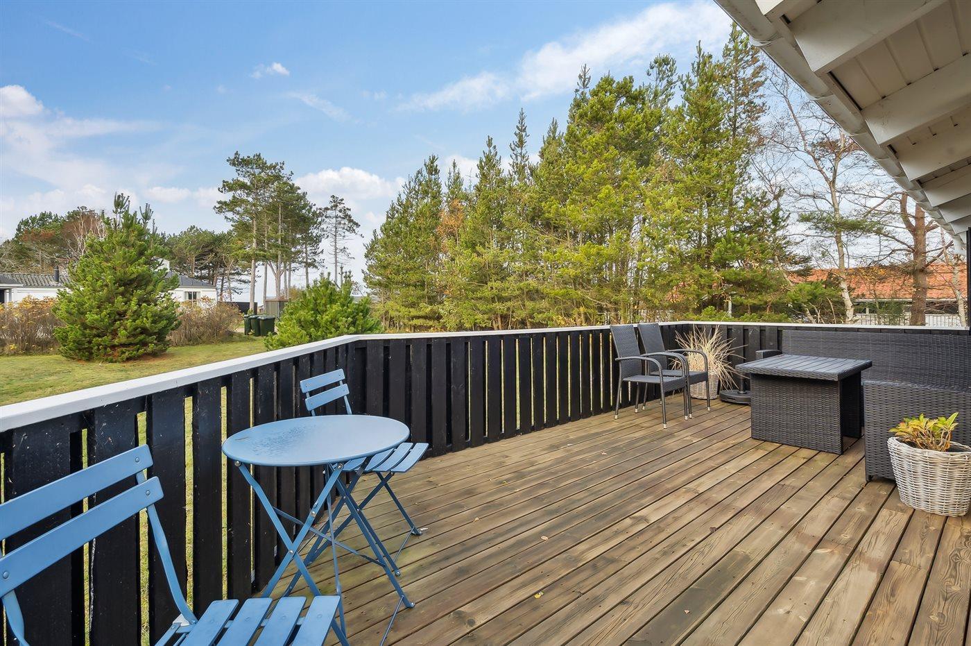 Ferieboligen er beliggende på en 1300 m² stor naturgrund. Der er 200 m til havet. Nærmeste forretning er beliggende i en afstand af 1300 m. Der er en golfbane i en afstand af 9200 m. Til ferieboligen hører 40 m² terrasseareal. Desuden er der 10 m² overdækket terrasse. Heraf i alt 25 m² lukket terrasse. Der er redskabsrum. Gynge. Grill til rådighed. Parkering ved ferieboligen.
