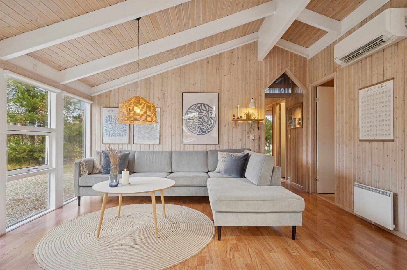Sommerhuset egner sig til 6 personer. Ferieboligen er på 77 m² og er bygget i 2001. Det er ikke tilladt at medbringe husdyr. Ferieboligen er udstyret med energibesparende varmepumpe. (Aircondition). Der er gulvvarme i alle klinkegulve. Ferieboligen har kombineret vaskemaskine og tørretumbler. Frysekapacitet på 10 liter. Der er desuden brændeovn. Til de små er der 2 stk. barnestole.